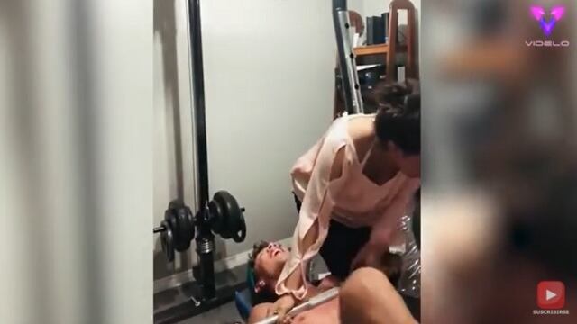 Una mujer intentó ayudar a su hermano, que estaba haciendo press de banca, pero ninguno de los dos fue capaz de levantar la barra de pesas de su pecho.
