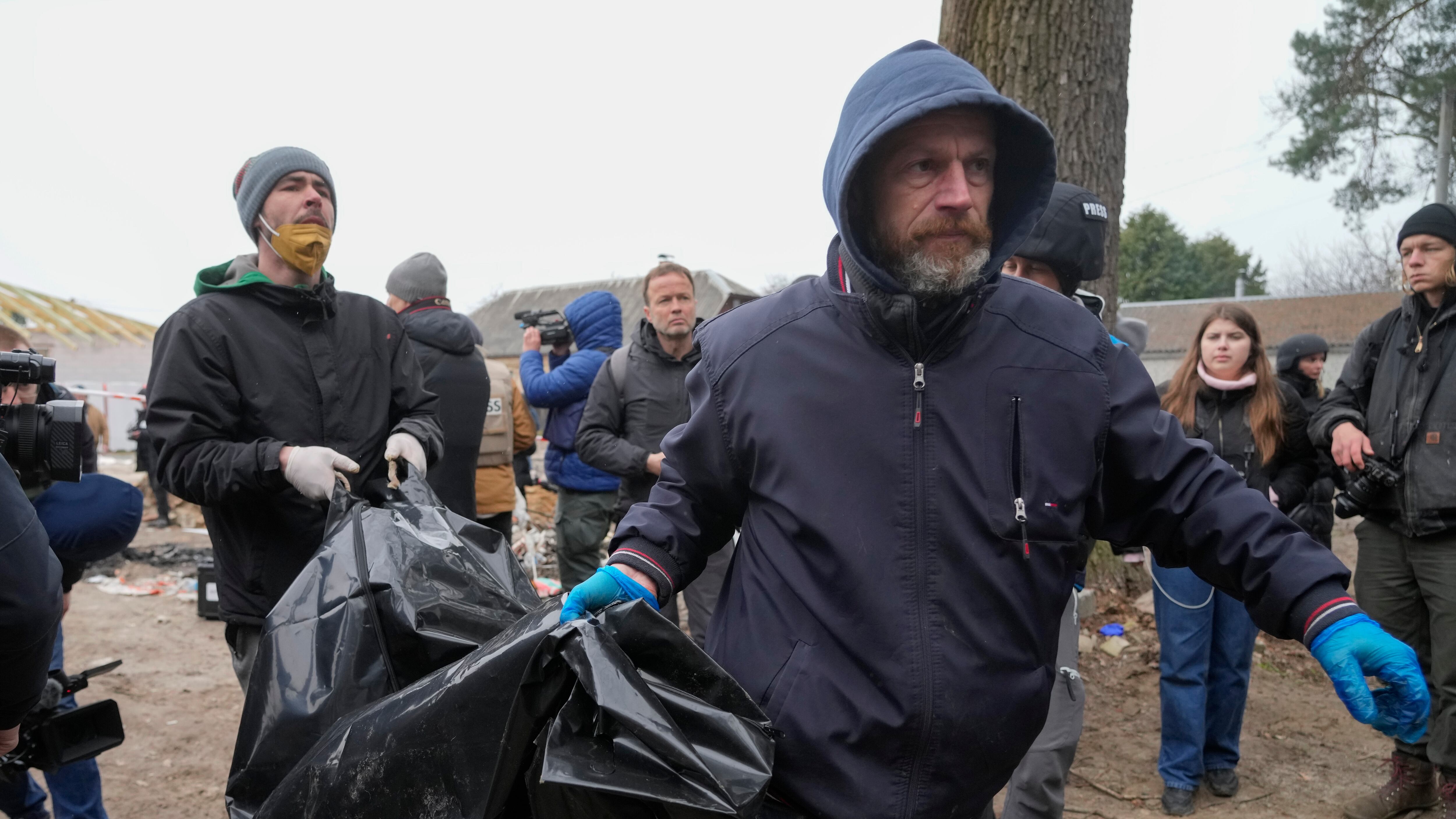 La AP pudo ver decenas de cadáveres en los alrededores de Bucha, donde las fuerzas rusas se retiraron la semana pasada. Las imágenes, que incluyen a algunos con los brazos atados, han horrorizado al mundo.