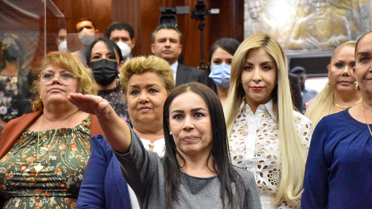 Con 29 votos a favor, se validó a Montes Mendoza como presidenta municipal sustituta, la ahora alcaldesa de Aguililla fue propuesta para sustituir a Valencia por la dirigencia estatal del Partido Verde Ecologista de México (PVEM) y por el Comité Municipal.