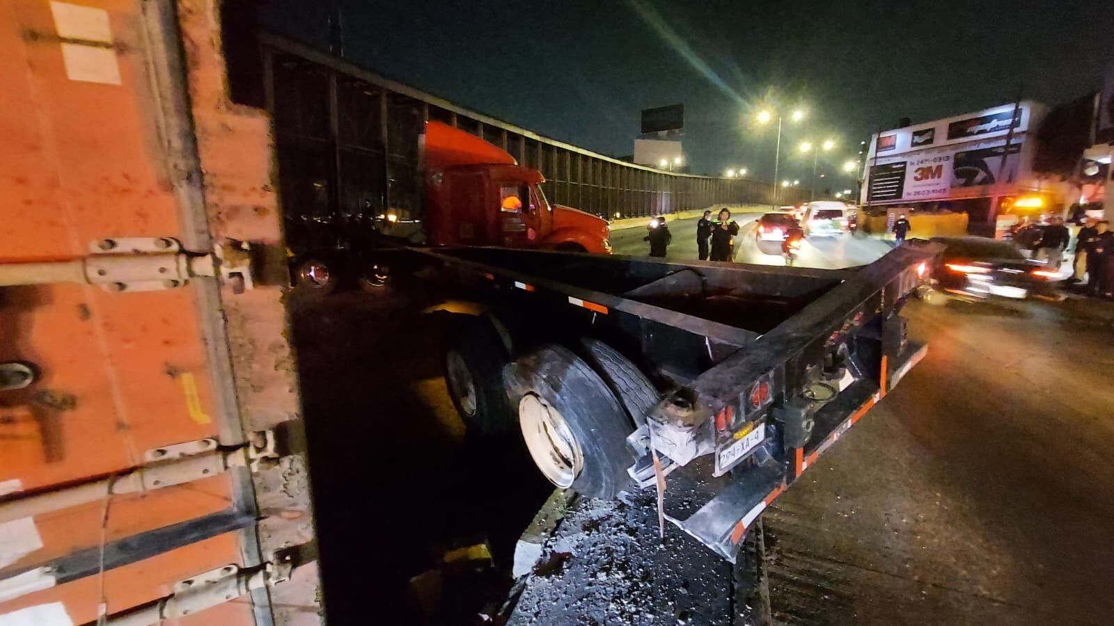 La circulación vial en Circuito Interior se interrumpió por completo debido a que la caja del vehículo de carga bloqueó los carriles centrales de la avenida y los autos solo pueden avanzar en la lateral.