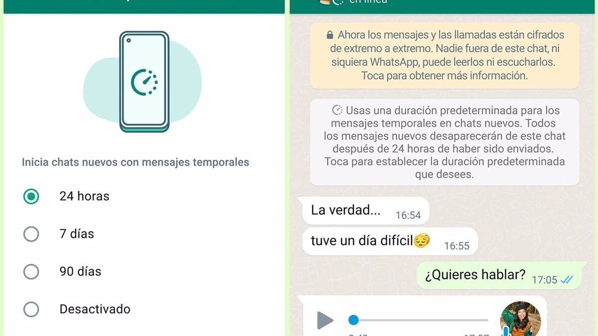 WhatsApp lanzó los mensajes temporales, que desaparecen pasado determinado tiempo, a finales de 2020, mientras que en verano de 2021 presentó una función que hace que las fotos y los vídeos desaparezcan inmediatamente después de haberse visto.