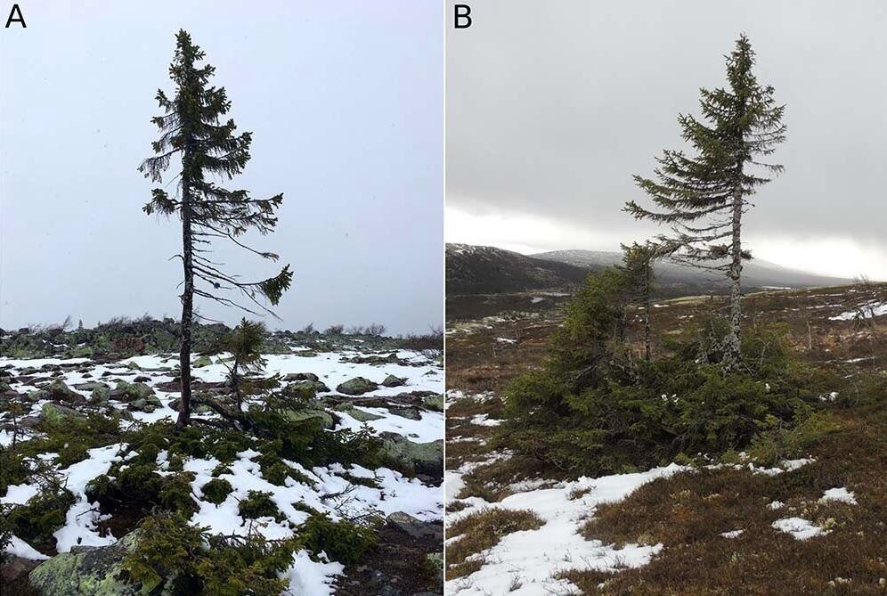 Lo que ha frenado a la picea durante los últimos diez milenios sigue siendo un misterio. El nuevo estudio muestra que los primeros árboles de abeto en el lugar estaban genéticamente relacionados con los abetos clonales solitarios que se pueden encontrar en lo alto de las laderas de las montañas de Suecia en la actualidad. Estos se conocen como «clonales» porque cuando el tronco ha muerto, se han regenerado nuevos árboles a partir del sistema de raíces sobreviviente del árbol. Algunos también se han reproducido por medio de retoños de raíces (o brotes de raíces).