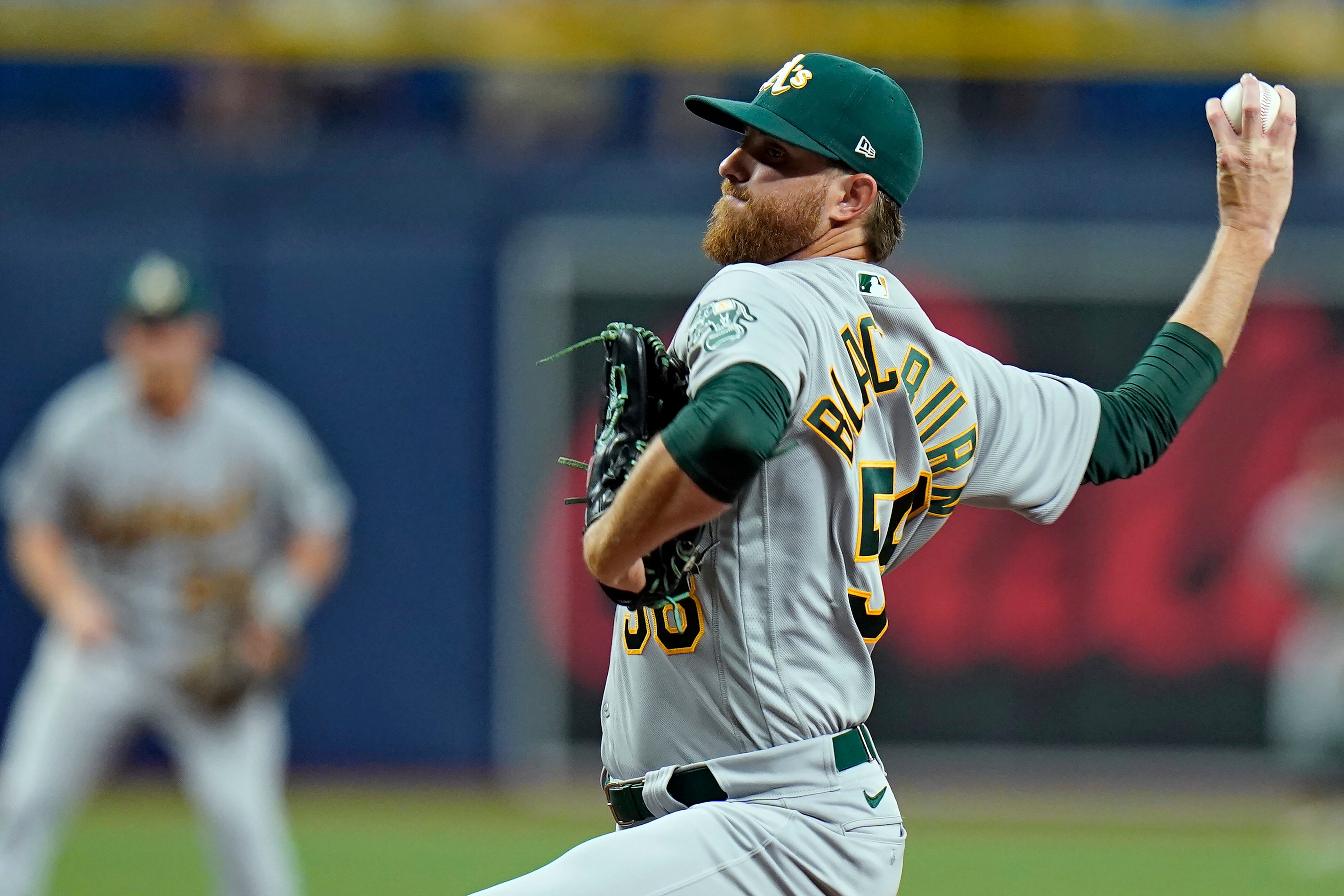 ST. PETERSBURG, Florida, EE.UU. (AP) — Paul Blackburn permitió tres imparables en cinco entradas en blanco, Seth Brown y Elvis Andrus sacudieron sendos cuadrangulares de tres anotaciones y los Atléticos de Oakland derrotaron el lunes 13-2 a los Rays de Tampa Bay, que sufrieron su primer revés de la temporada.