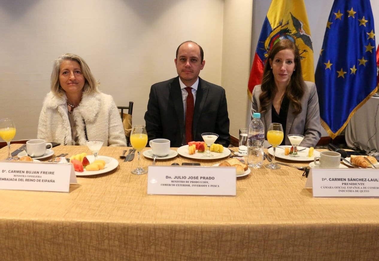Durante un encuentro con la Cámara Oficial Española de Comercio e Industria de Quito, Prado ha presentado a las empresas asistentes al encuentro los planes del Gobierno en materia comercial y económica, especialmente de cara al exterior.