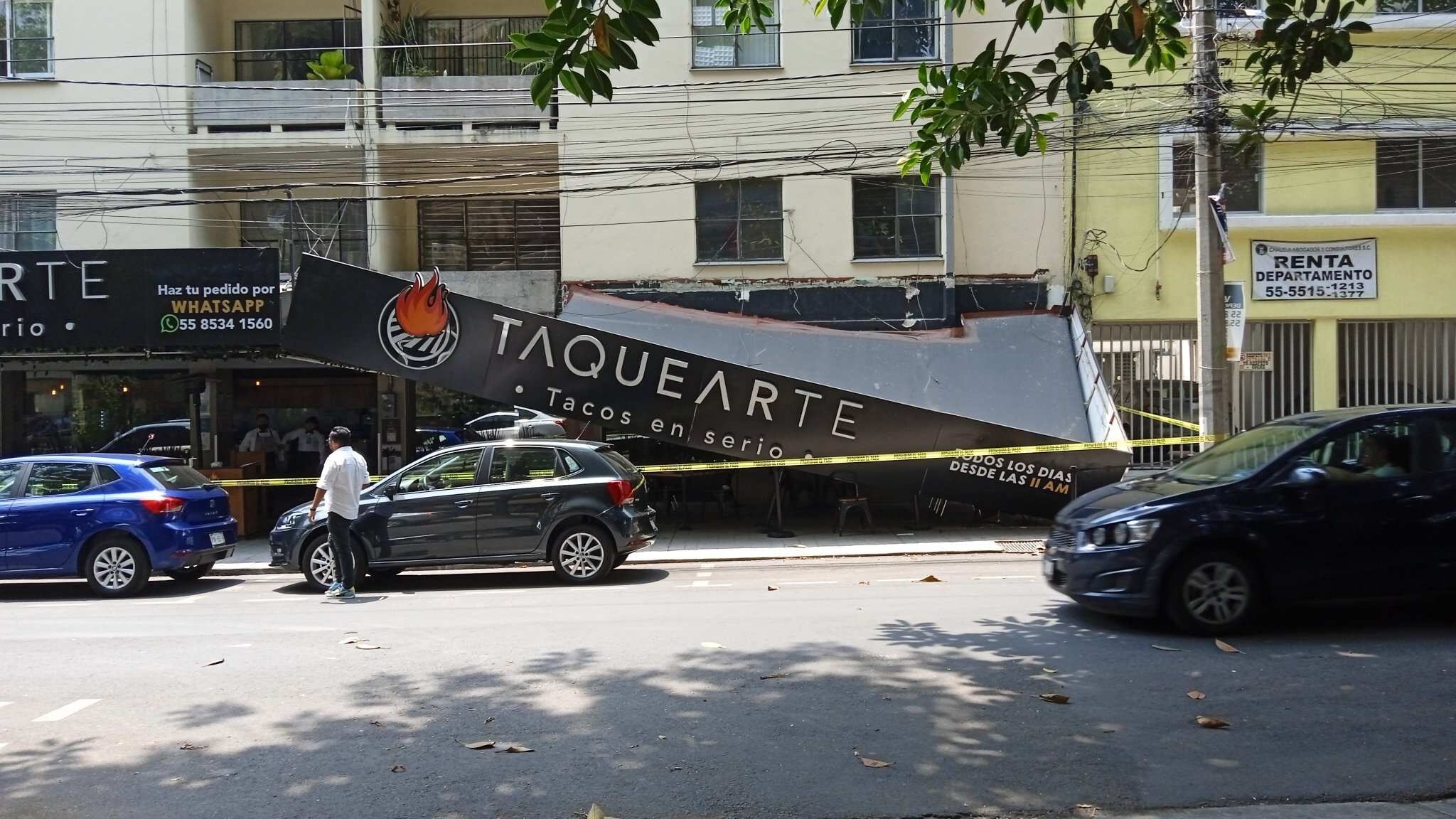 Una persona resultó lesionada tras el desplome del toldo de una taquería ubicada en el cruce culiacán-tlaxcala en la colonia Hipódromo Condesa, alcaldía Cuauhtémoc.