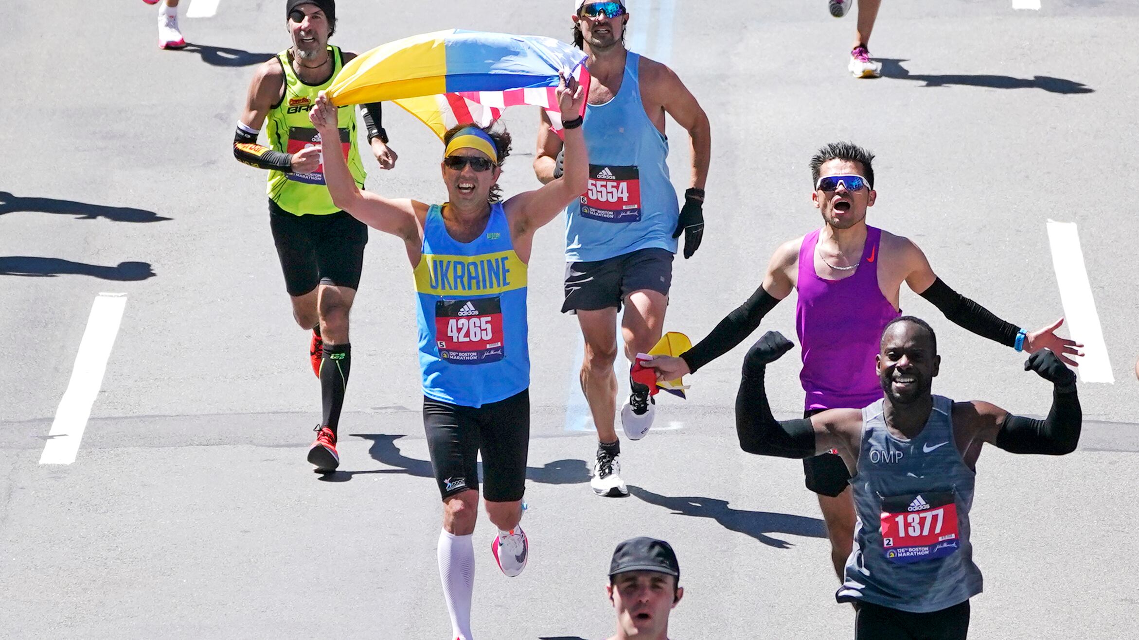 Igor Krytsak también cruzó la meta con una bandera de Ucrania. El corredor, de 33 años, voló desde Kiev y planeaba tomar un vuelo de regreso a casa poco después de la carrera. Recibió un permiso del gobierno para dejar el país tres días para poder participar en el maratón más antiguo.