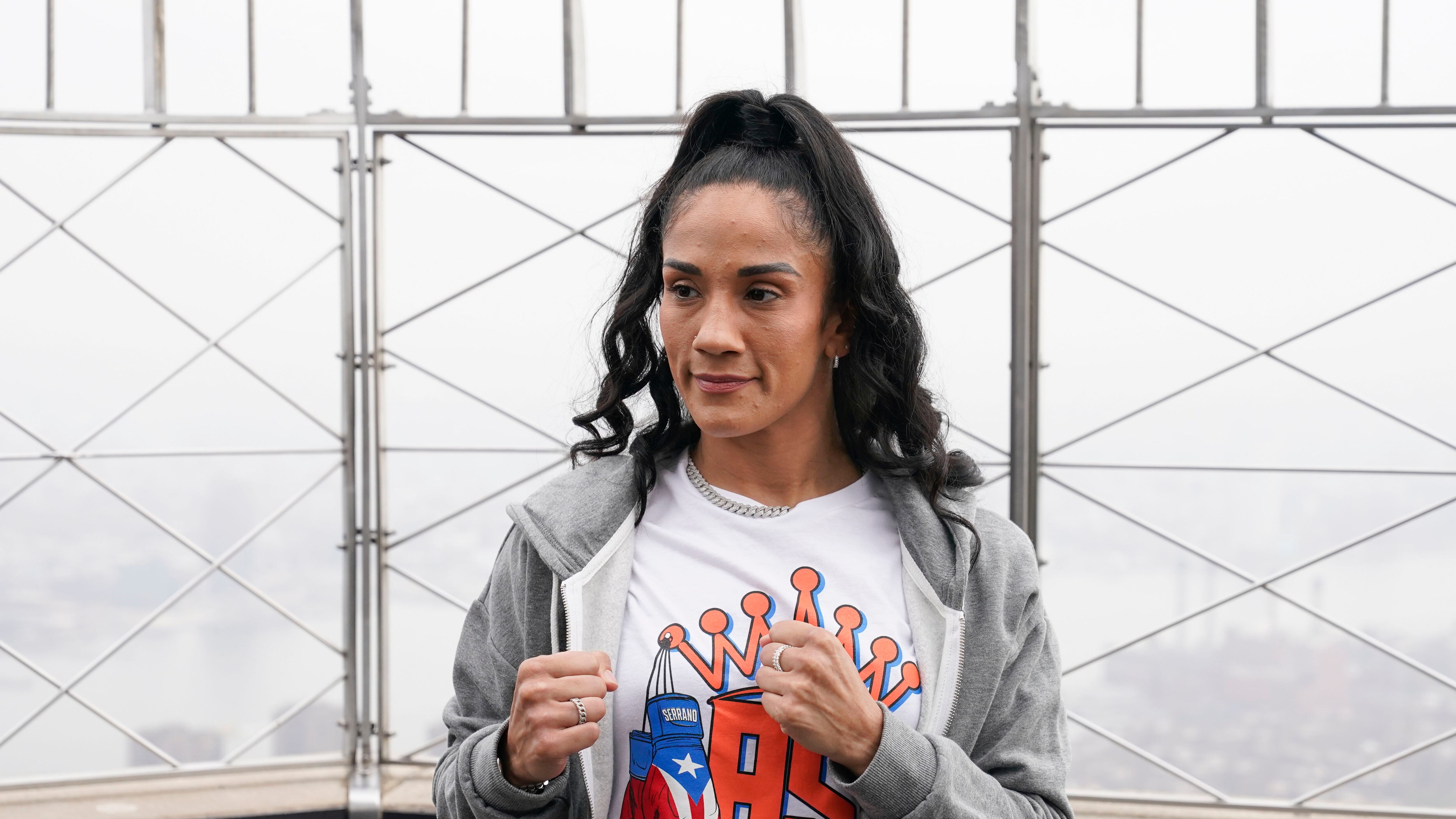 Vestida en ropa deportiva de color gris claro, Serrano (42-1-1, 30 nocauts) sonrió a las decenas de cámaras que disparaban sus flashes a lo alto del famoso Empire State Building de Nueva York. El sábado, la retadora principal en esta división protagonizará junto a Taylor la primera pelea entre mujeres que encabece la cartelera del Madison Square Garden en 140 años.