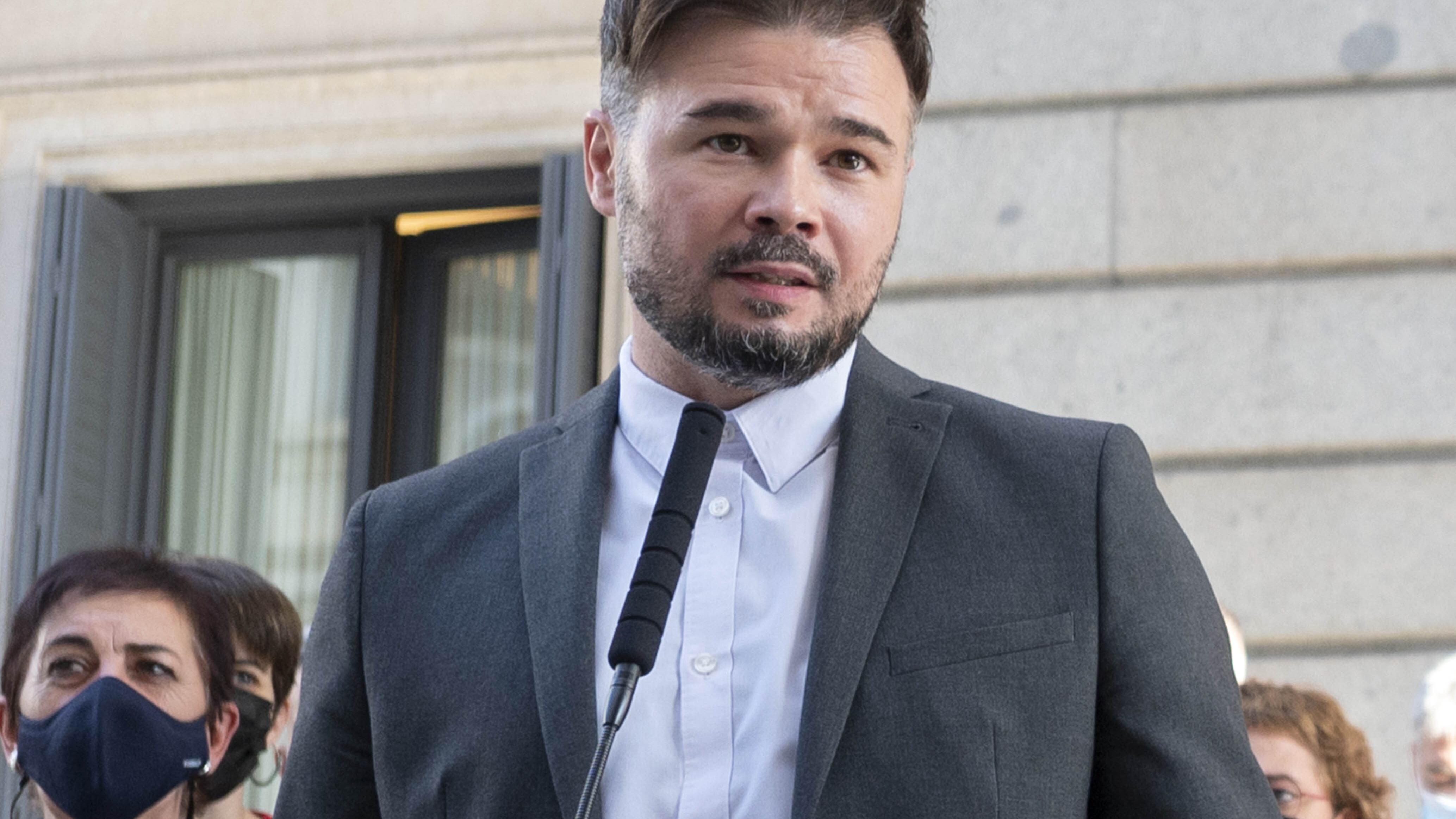Rufián ha abandonado el hemiciclo tras la respuesta que Robles ha dado al portavoz del PNV, Aitor Esteban, y, ya en el pasillo ha dejado claro que este asunto no se va a solucionar con el presidente del Gobierno usando «un tono bajito» y su ministra de Defensa diciendo «burradas».