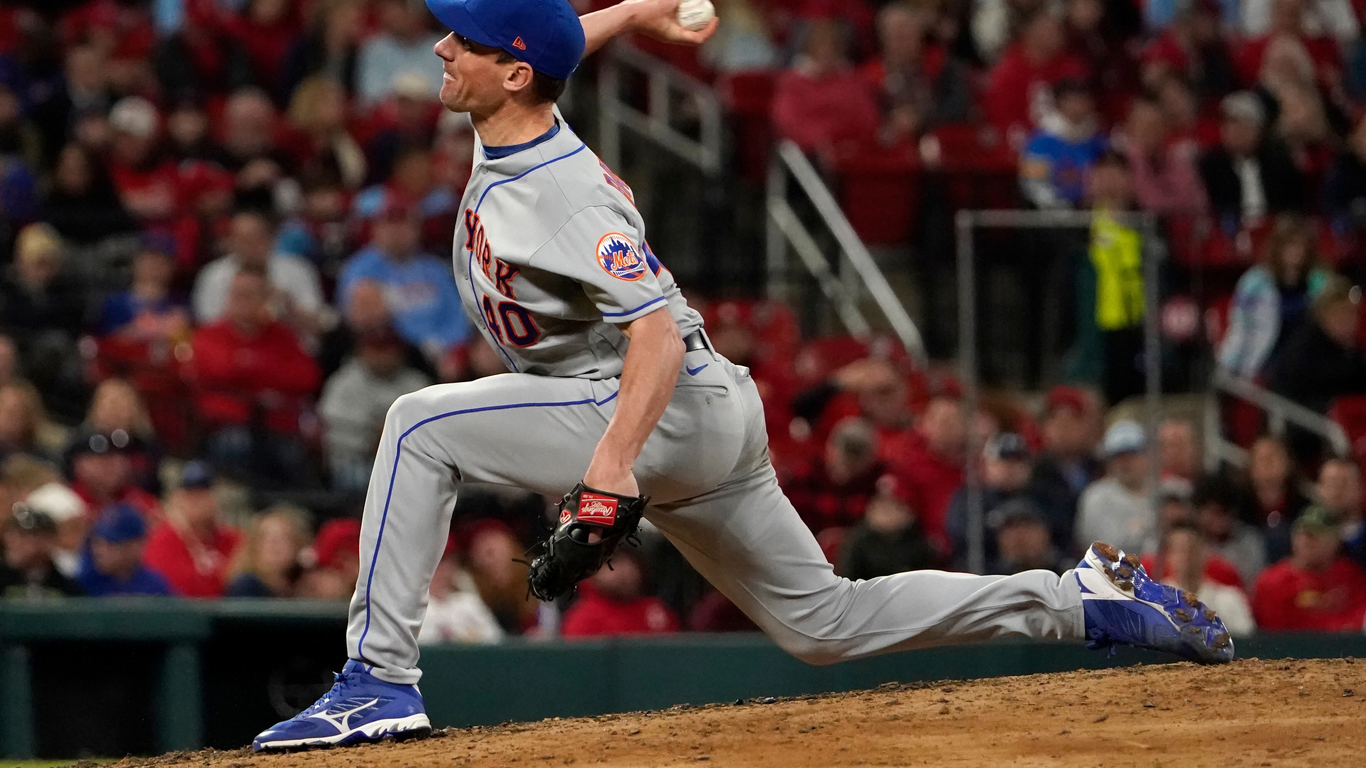 En foto del martes 26 de abril del 2022, Chris Bassitt, abridor de los Mets de Nueva York, lanza en el quinto episodio ante los Cardenales de San Luis. El miércoles 27 de abril del 2022, Bassitt cree que las pelotas son defectuosas y por eso han recibido (Jeff Roberson/AP)