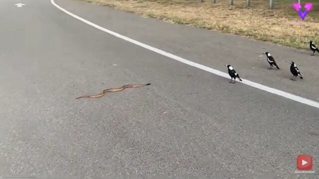 Poco a poco, las urracas se alejaban de la enorme serpiente sin dejar de graznar para intentar intimidarla. «Finalmente, las urracas abandonaron el lugar y la serpiente también. No me asusté porque en Australia es muy común encuentros así», señaló.