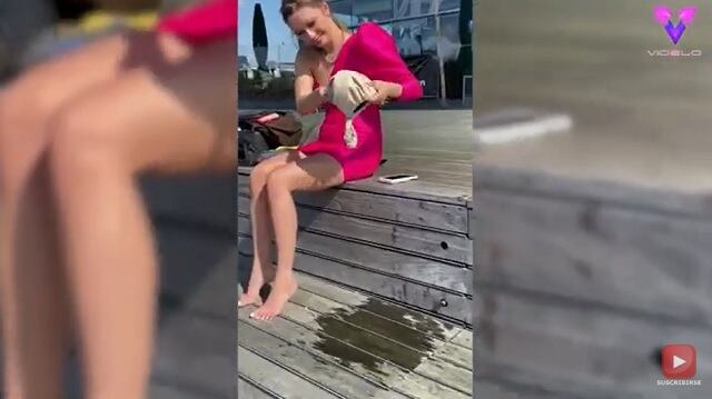 Cuando Karina lanzó su bolso al aire antes de que pudiera intentar cogerlo, el viento hizo que el bolso se le escapara de las manos. El bolso terminó en el agua debajo de los muelles, pero afortunadamente un chico que caminaba cerca y vio el incidente fue capaz de bajar y rescatar el bolso empapado.