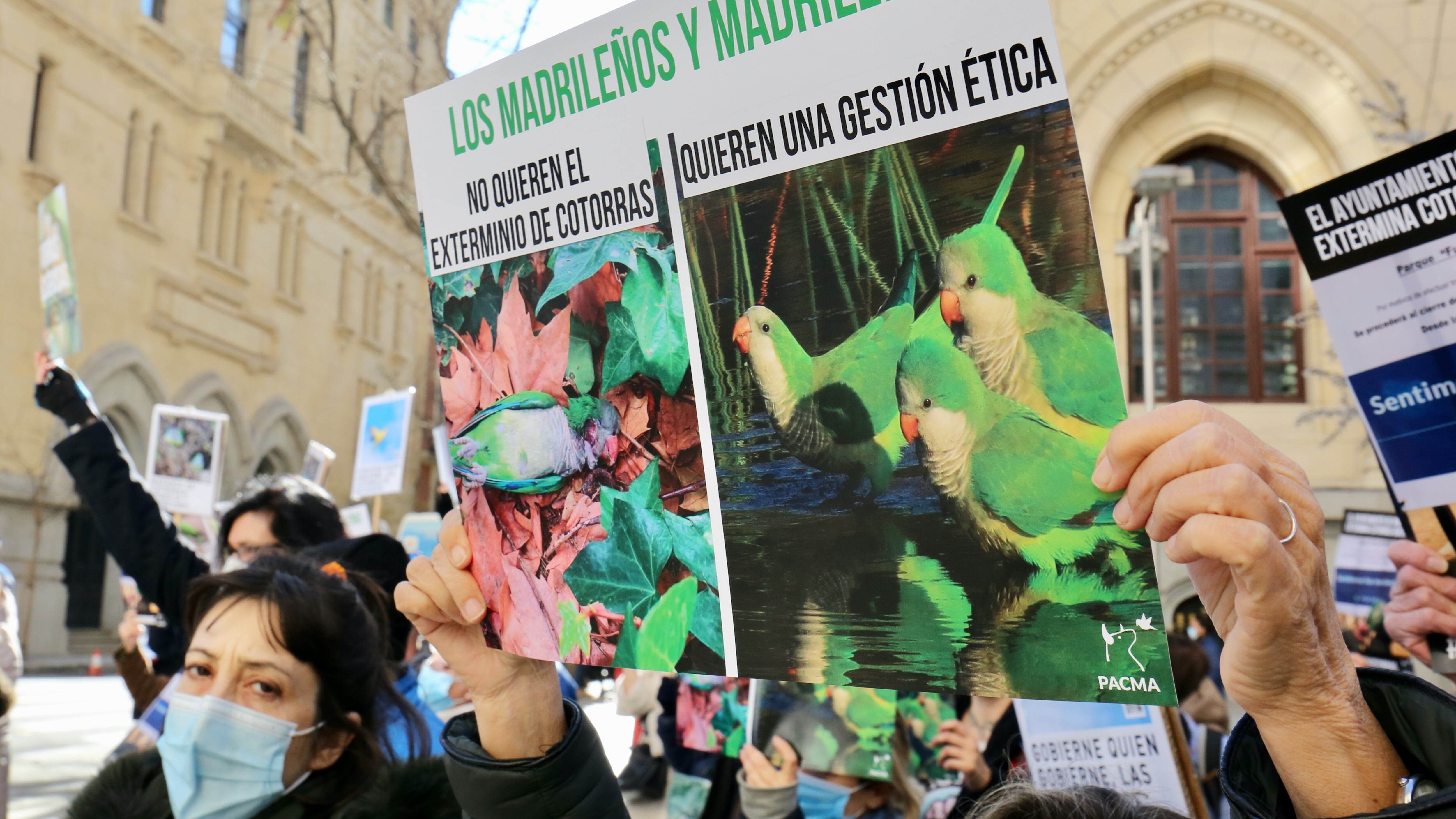 El Partido Animalista PACMA estudia emprender acciones legales contra lo que denomina «exterminio» de aves en la capital con motivo de la campaña del Ayuntamiento de Madrid para acabar con la plaga de cotorras argentinas en la ciudad de Madrid.