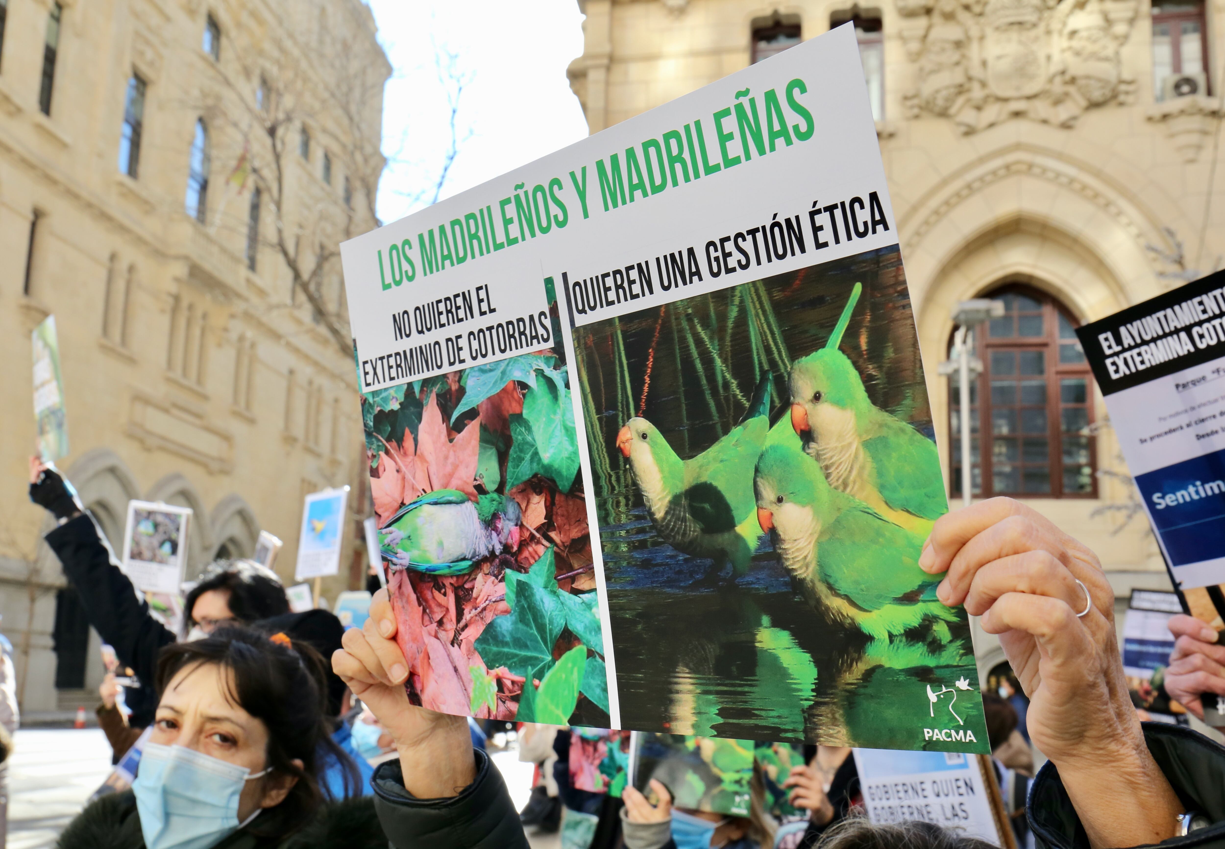 El Partido Animalista PACMA estudia emprender acciones legales contra lo que denomina «exterminio» de aves en la capital con motivo de la campaña del Ayuntamiento de Madrid para acabar con la plaga de cotorras argentinas en la ciudad de Madrid.