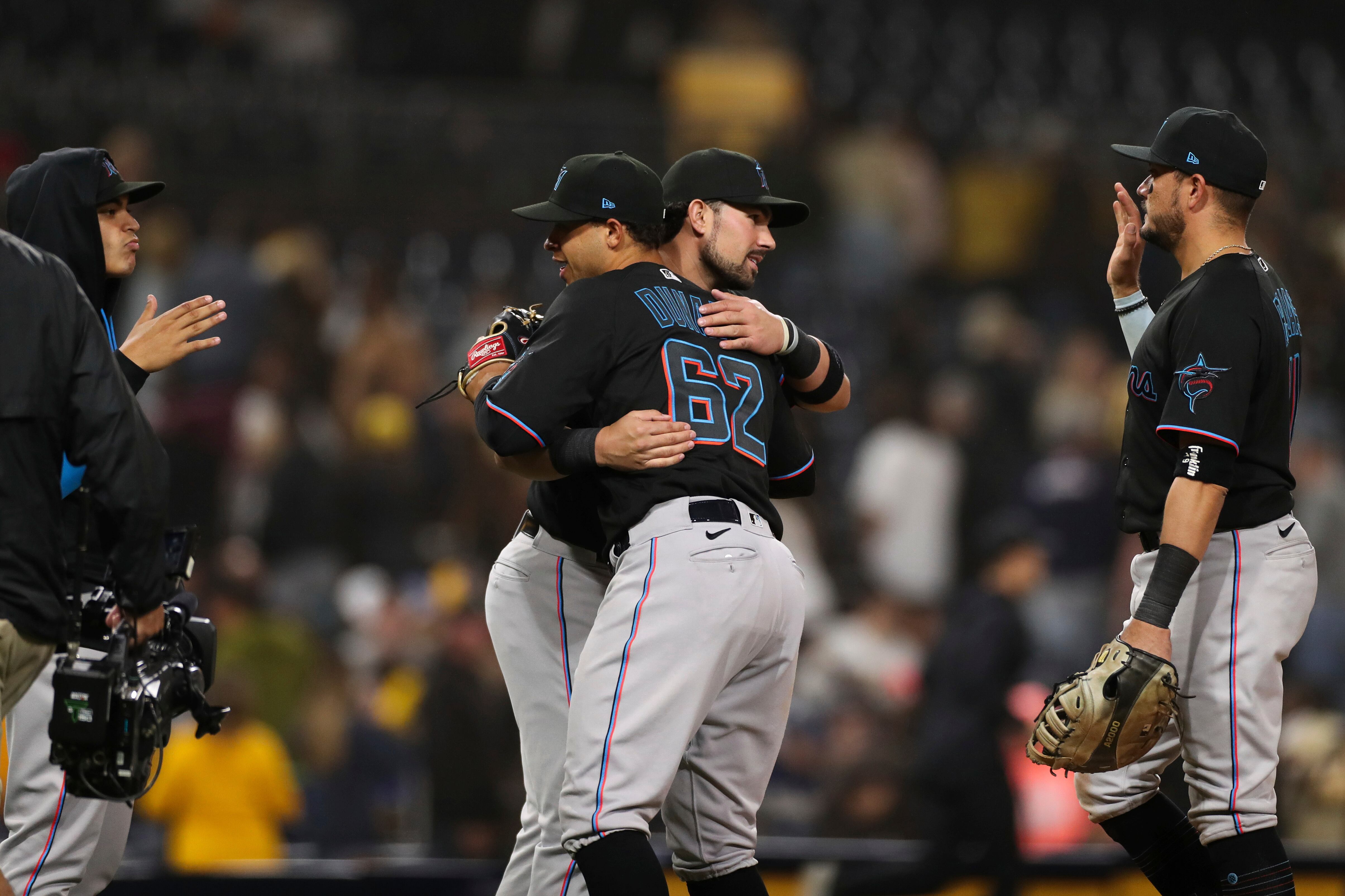 SAN DIEGO (AP) — Joe Dunand, sobrino de Alex Rodríguez, disparó un jonrón al tercer lanzamiento que le hicieron en las mayores, y añadió un doble durante el encuentro que los Marlins de Miami ganaron el sábado 8-0 a los Padres de San Diego.