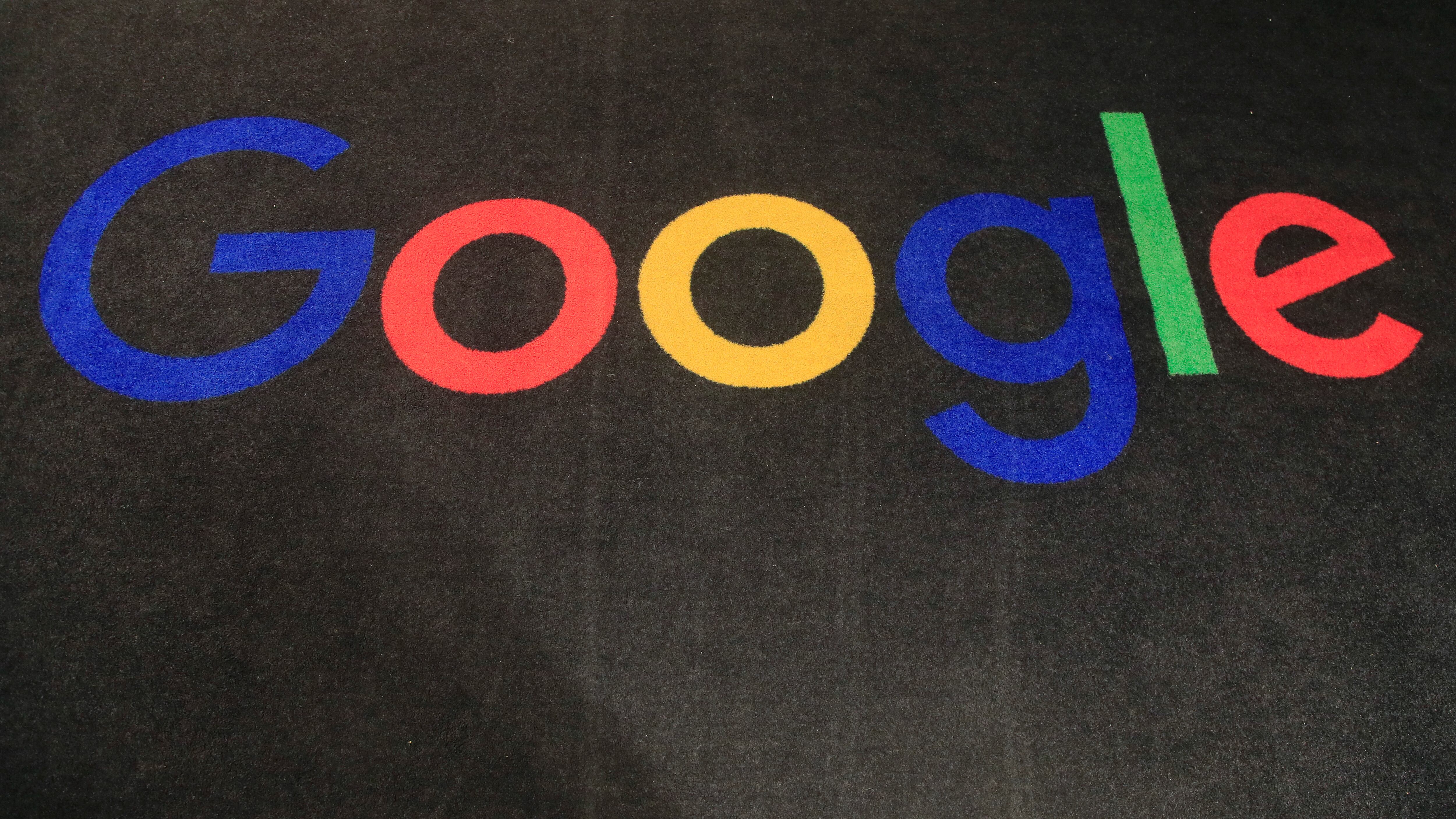 El logo de Google en una alfombra a la entrada de las oficinas de la empresa en Francia el 18 de noviembre de 2019. (AP Foto/Michel Euler) (Michel Euler/AP)