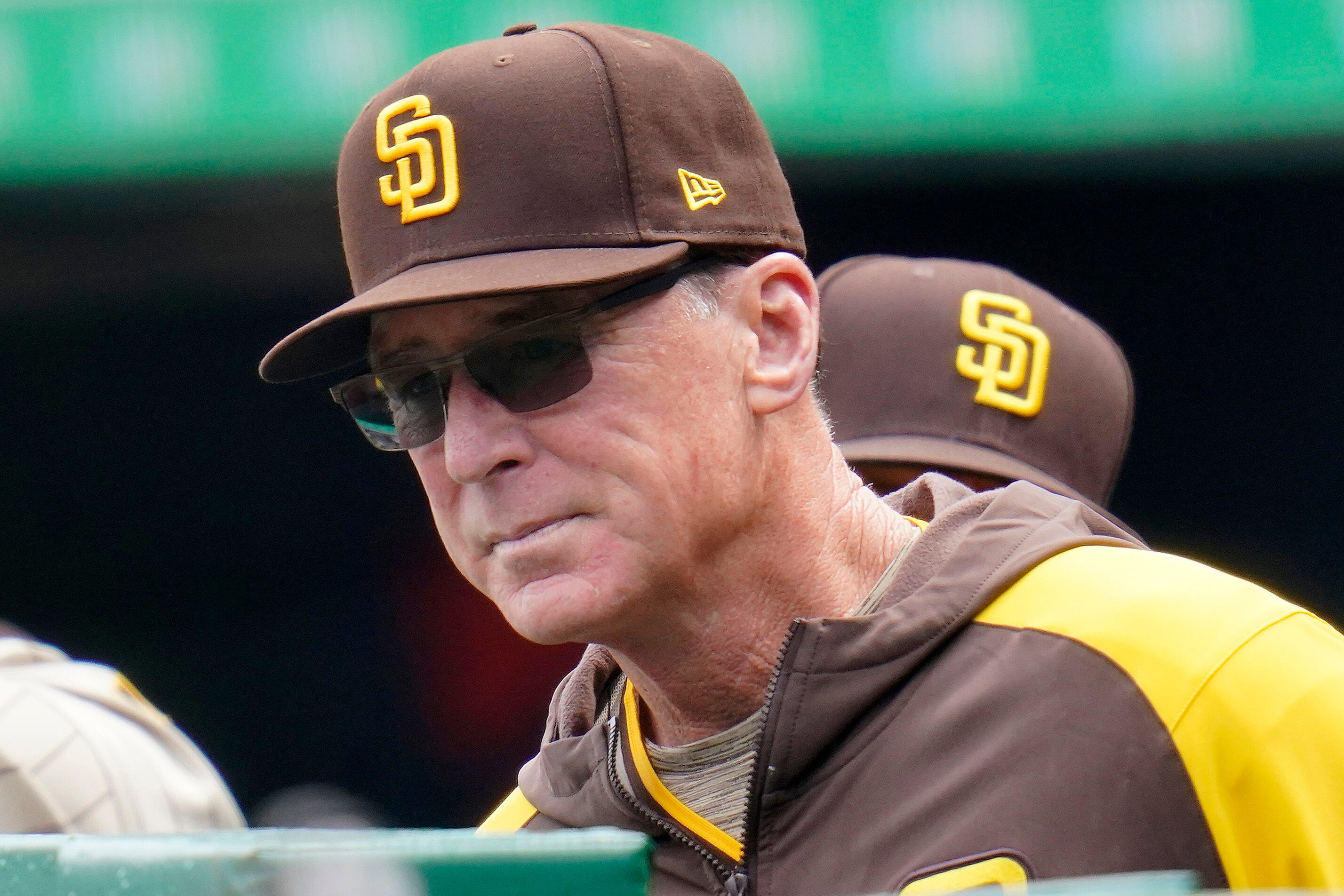 ARCHIVO - El piloto de los Padres de San Diego, Bob Melvin, dirige desde la cueva en la primera entrada del partido contra los Piratas de Pittsburgh, en Pittsburgh, el 1 de mayo de 2022. (AP Foto/Gene J. Puskar, archivo) (Gene J. Puskar/AP)