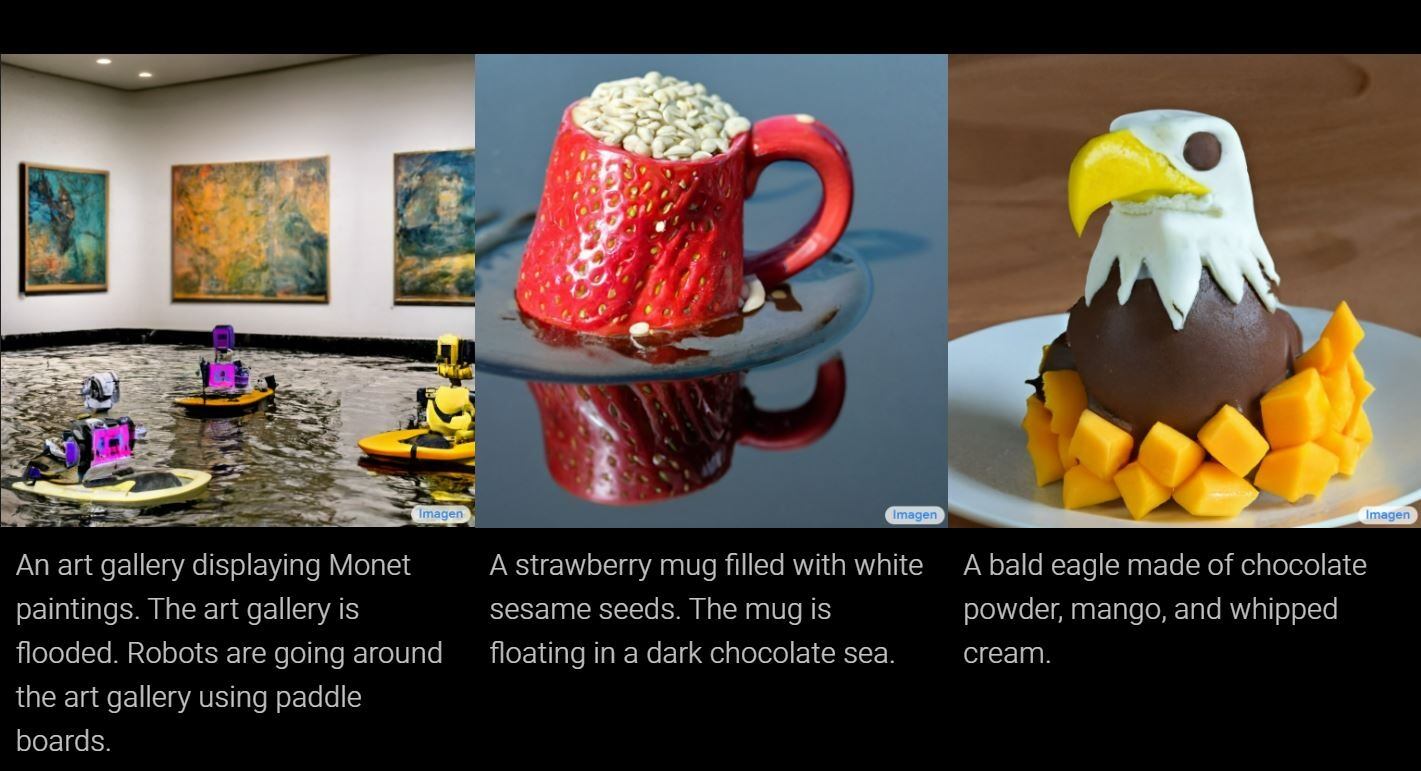 Una de las premisas de IMAGEN es la de ofrecer resultados con un nivel de detalle más preciso con respecto a otros sistemas de conversión de texto en imágenes similares, como VQ-GAN+CLIP y DALL-E 2.