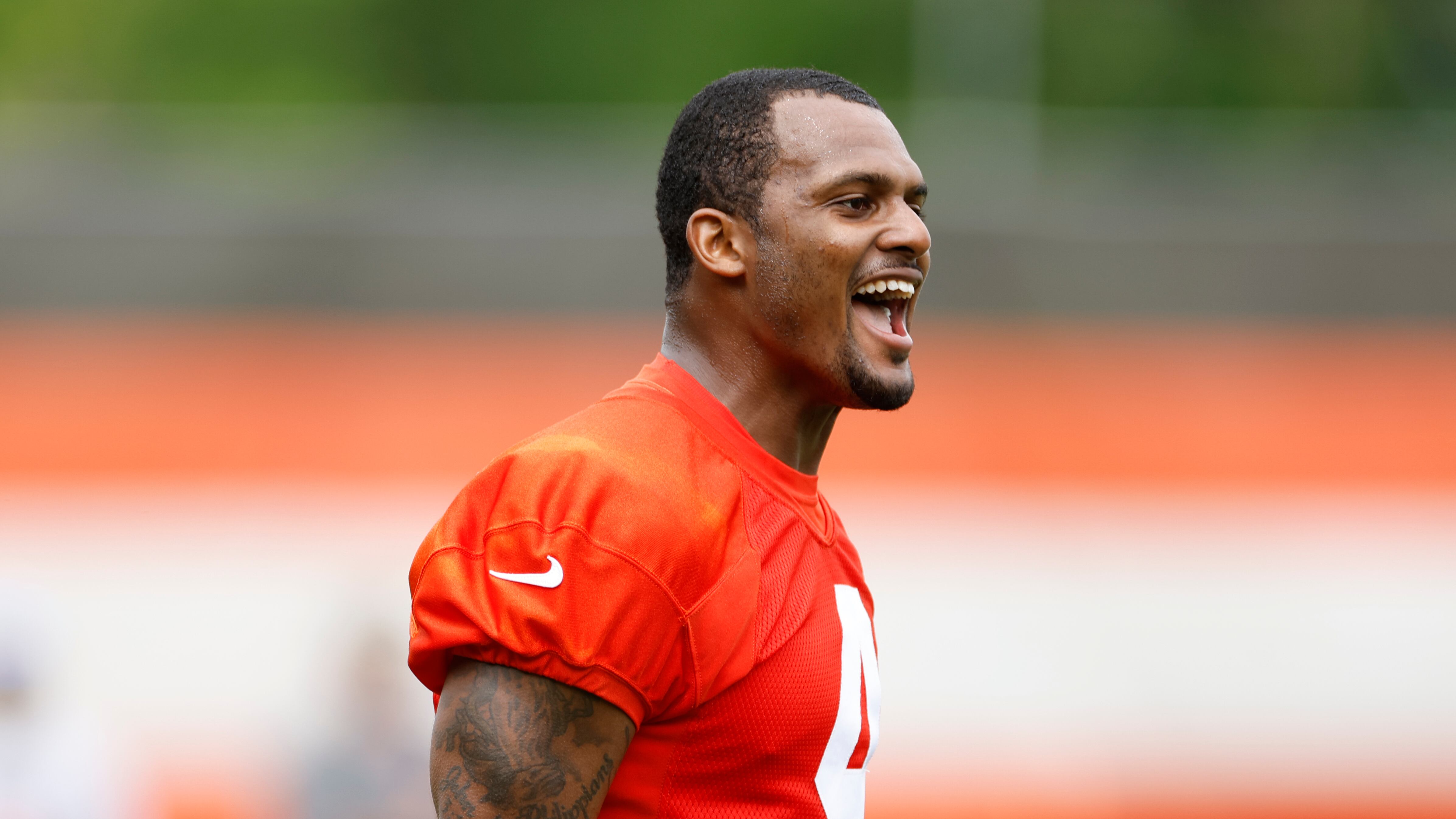 BEREA, Ohio, EE.UU. (AP) — Era imposible que Deshaun Watson pasara desapercibido con su camiseta, pantalones y casco anaranjados. Este último llevaba un letrero con su apellido adherido en la parte frontal, como si hiciera falta.