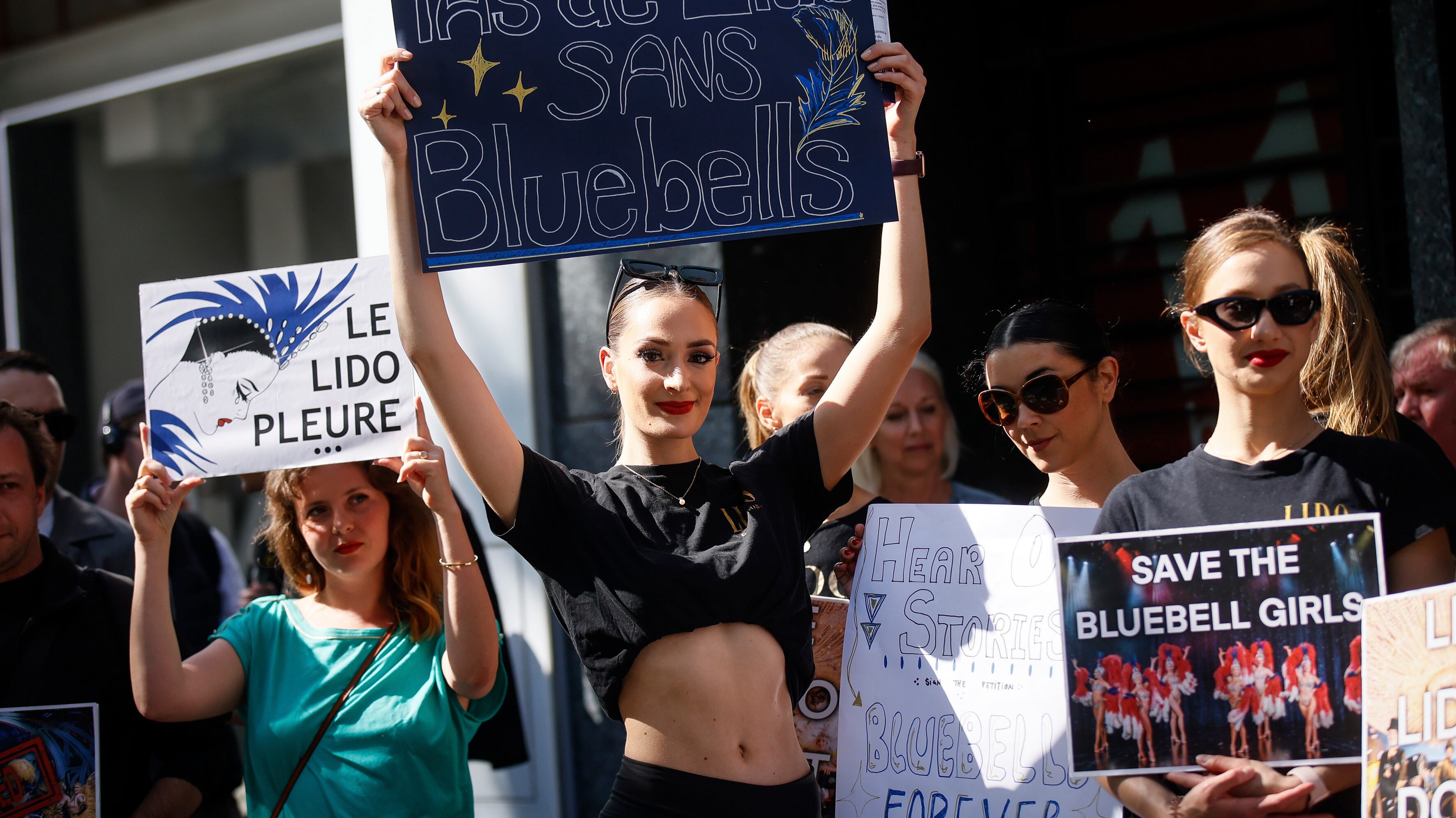 El sábado, las bailarinas, vestidas de negro, se manifestaron en la amplia acera frente al Lido y luego bailaron ante una multitud que les aplaudía, alzando sus largas piernas al ritmo de una canción clásica de cabaret.