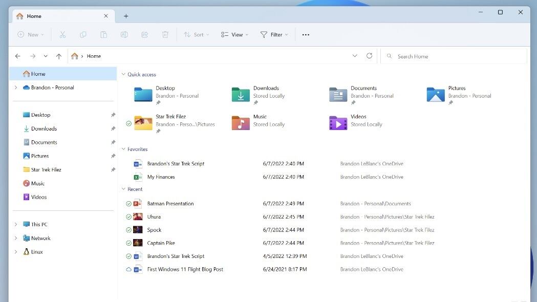 El apartado de acceso rápido que actualmente se encuentra en el menú izquierdo con el símbolo de una estrella, pasarán a tener un espacio más destacado desde el menú de inicio de este explorador. Con el nuevo diseño mostrarán las que sean de uso más frecuente para el usuario y, debajo, los archivos favoritos y los más recientes.