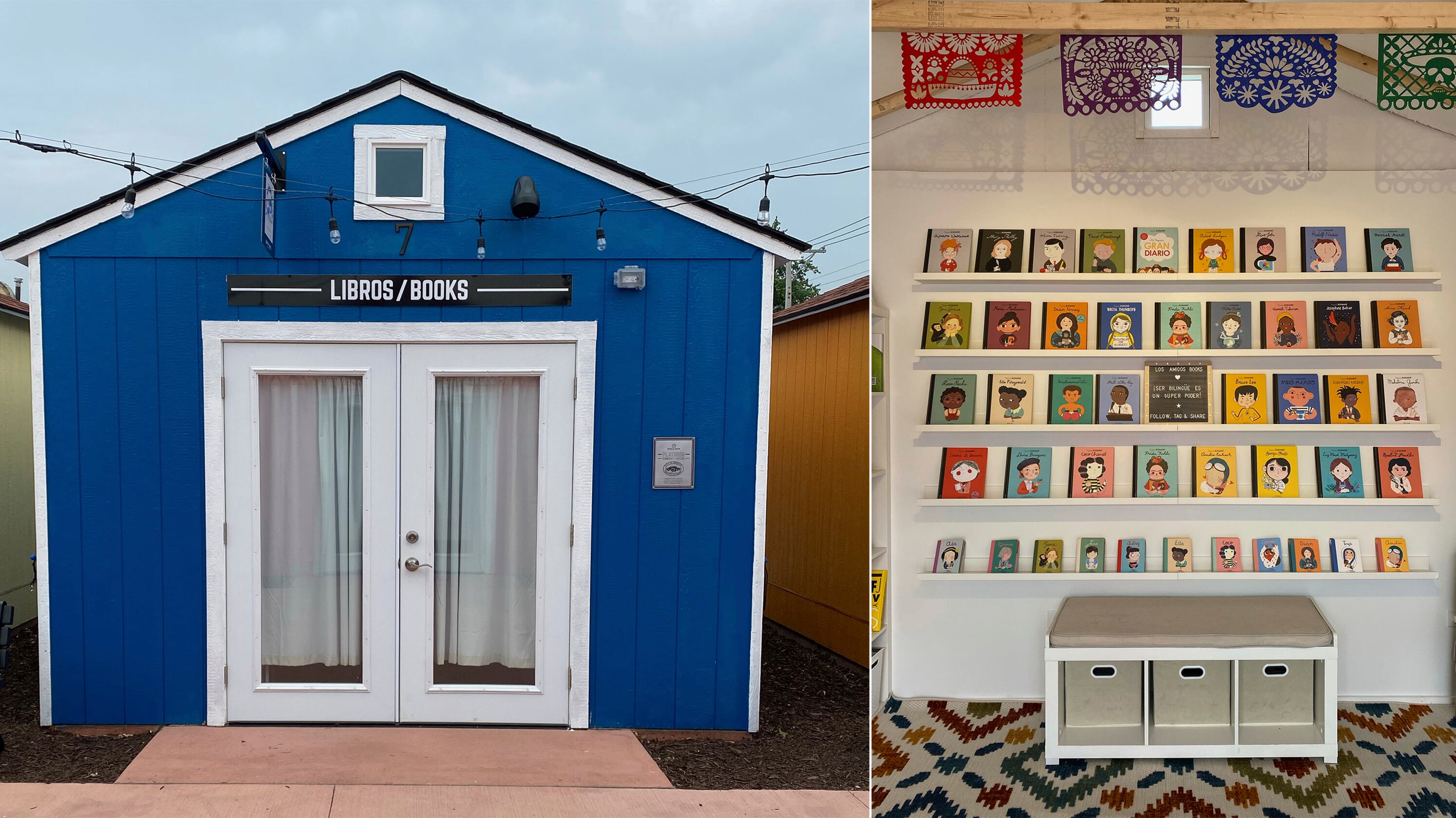 La solución: una librería. Con la ayuda de una subvención local y cheques de estímulo que ella y su esposo recibieron durante la pandemia, Romani abrió Los Amigos Books inicialmente como una tienda en línea el año pasado y ahora con un pequeño local físico con un frente azul brillante en Berwyn, Illinois. Se enfoca en cuentos infantiles en inglés y español.