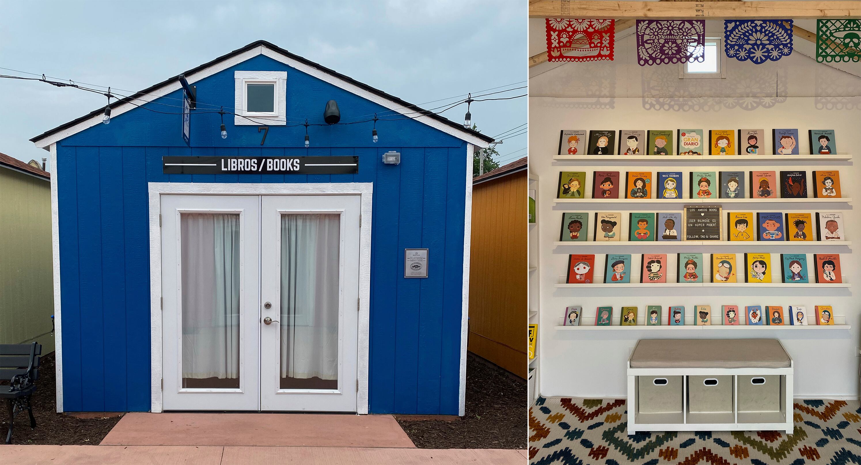 La solución: una librería. Con la ayuda de una subvención local y cheques de estímulo que ella y su esposo recibieron durante la pandemia, Romani abrió Los Amigos Books inicialmente como una tienda en línea el año pasado y ahora con un pequeño local físico con un frente azul brillante en Berwyn, Illinois. Se enfoca en cuentos infantiles en inglés y español.