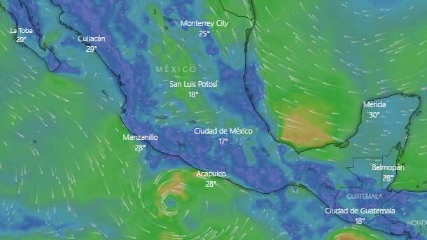 El SMN indicó que la circulación del ciclón provoca “lluvias intensas con puntuales torrenciales (150 a 250 mm) en los estado de Guerrero y Oaxaca; lluvias fuertes con puntuales muy fuertes (50 a 75 mm) en Jalisco, Colima y Michoacán, además de reforzar la probabilidad de lluvias fuertes en el centro del país”.