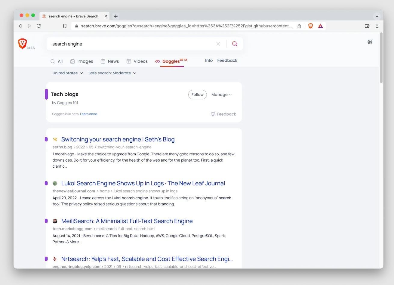 Entre estos 'Goggles', a las que se puede acceder a través de la versión beta, disponible en search.brav.com, destacan una clasificación que prioriza el contenido que se encuentra en los blogs de tecnología.