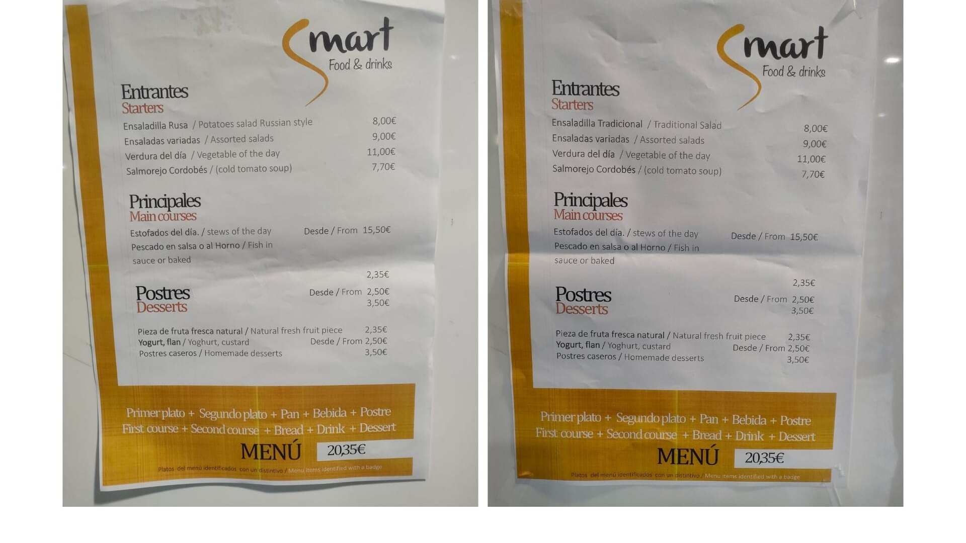 Sin embargo, dos días después ese plato ya ha desaparecido del menú y ha sido sustituido por otro igual en el que se evita la referencia a Rusia. La carta de este jueves ofrece ensaladilla tradicional, aunque también se puede optar por alternativas como el salmorejo o la verdura del día.