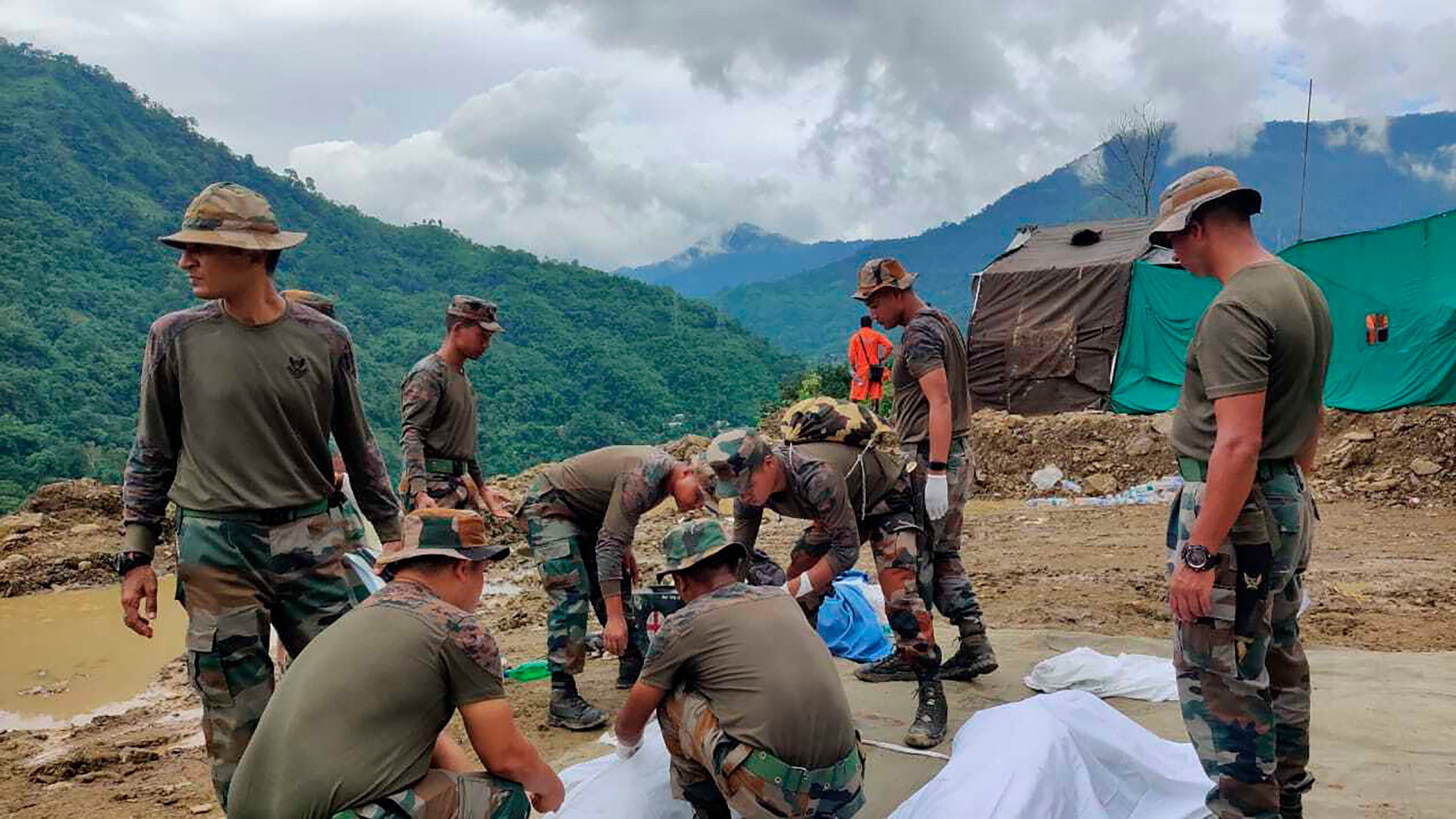 Trece soldados y cinco civiles han sido rescatados de los escombros de la estación de ferrocarril, los alojamientos residenciales del personal y otras infraestructuras que estaban bajo construcción, completamente arrasadas, dijo Kavidayal. Las lluvias continuas durante las últimas tres semanas han causado estragos en el noreste de la India —ocho estados y 45 millones de habitantes— y la vecina Bangladesh.