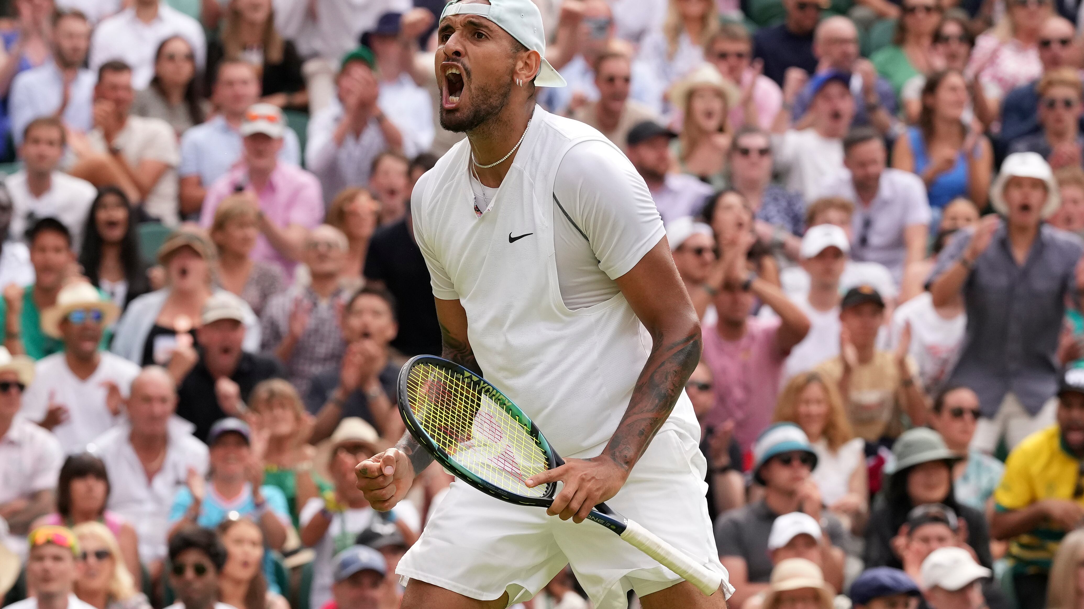 Ante el estadounidense Nakashima, Kyrgios recibió la atención de un entrenador entre los sets, quien masajeó su hombro. Durante un tramo del partido, los saques de Kyrgios retrocedieron de las 135 mph a 110 mph. Pero acabó recuperándose y volvió a desatar su potencia una y otra vez.