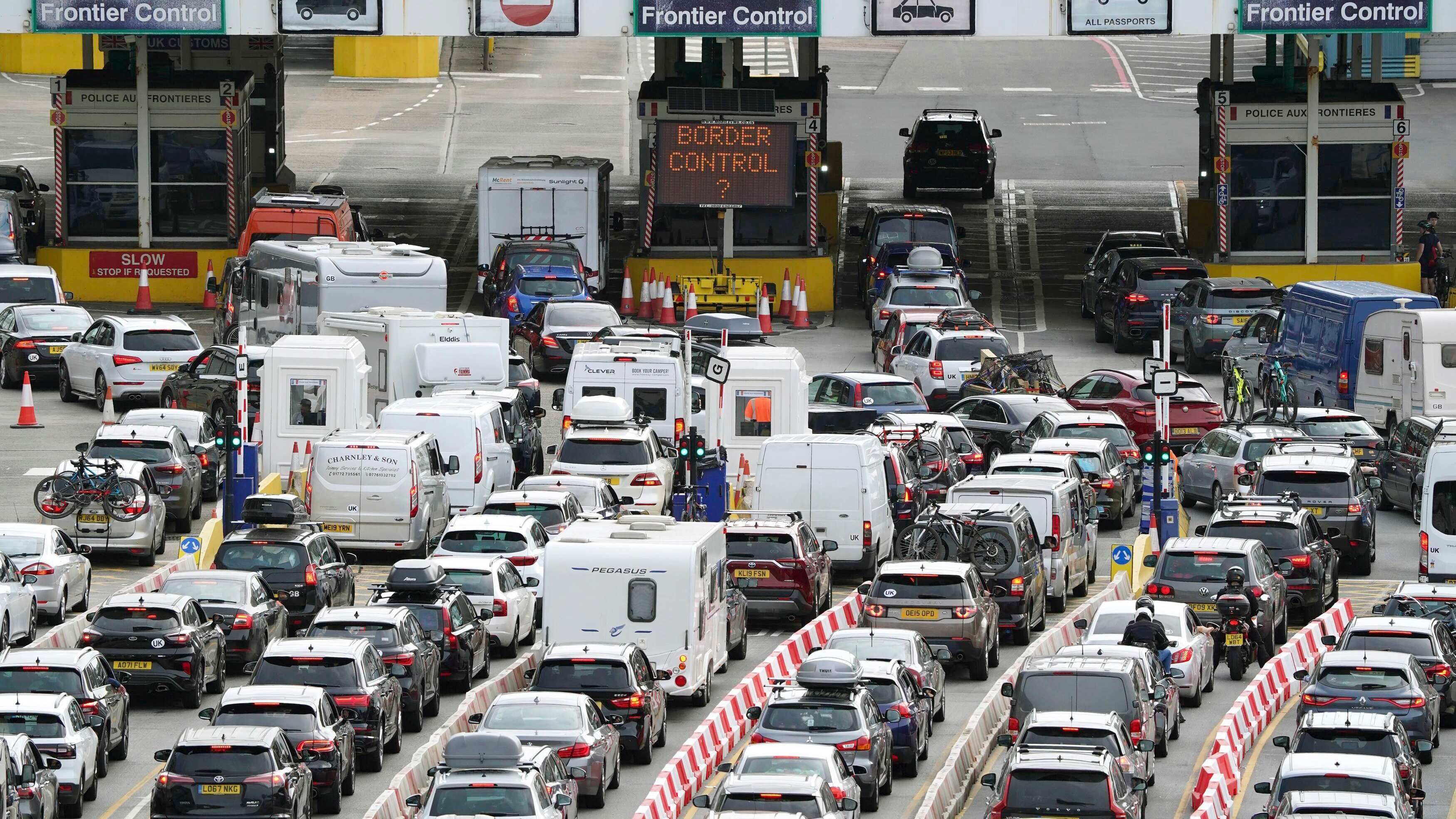 Según las autoridades de Dover, la falta de agentes fronterizos franceses estaba provocando esperas de hasta seis horas en los controles fronterizos del puerto del Canal de La Mancha, con colas de turistas y tráfico de mercancías que colapsaban las carreteras por varios kilómetros (millas).