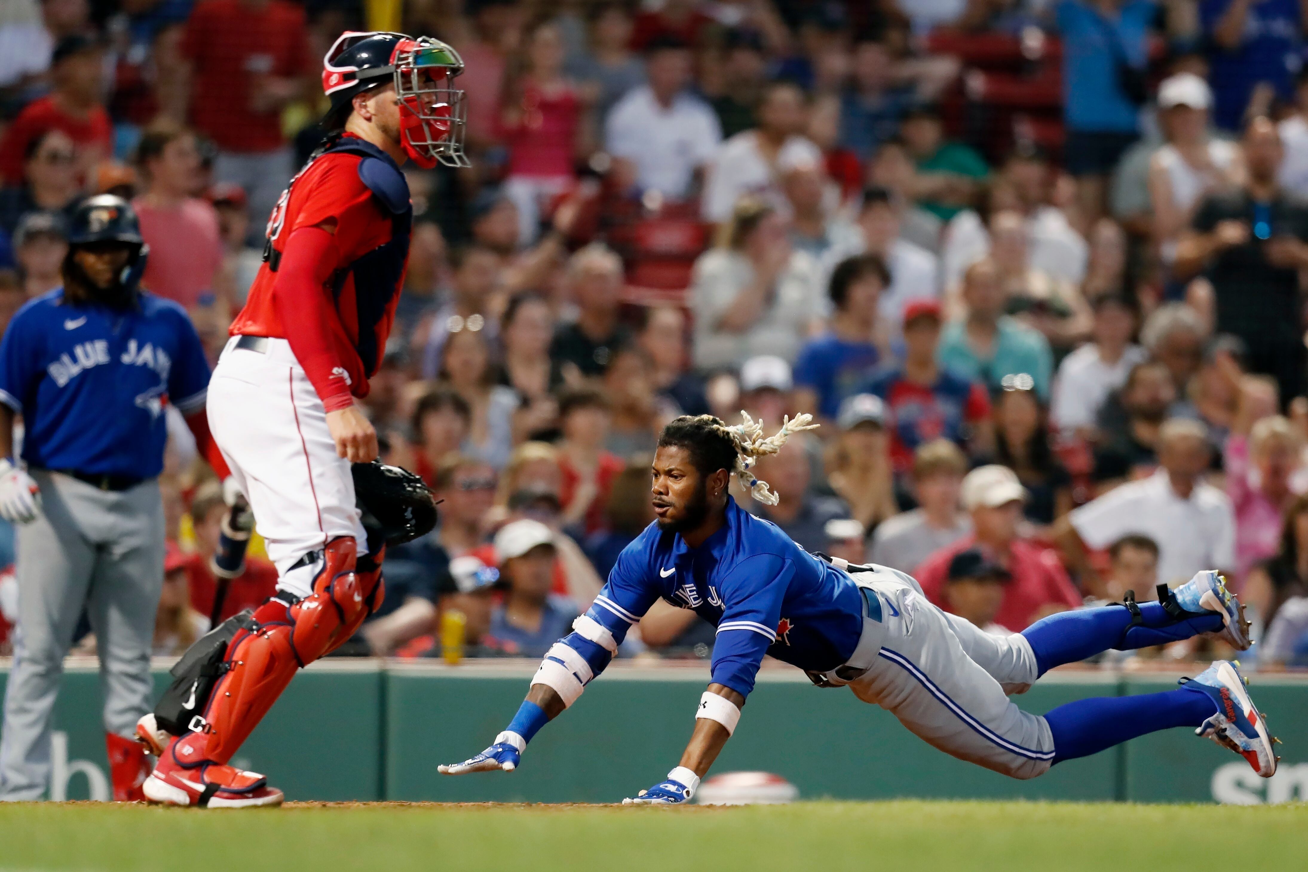 Toronto se quedó a dos anotaciones del récord moderno de anotaciones en un mismo juego en las Grandes Ligas tras varar a dos en el noveno episodio con el infielder de Boston Yolmer Sánchez en la lomita.
