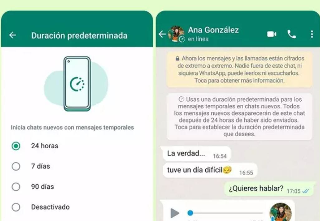 La compañía introdujo los chats temporales, que desaparecen tras un tiempo determinado (inicialmente, 7 días) en noviembre de 2020 y, un año después, integró opciones como nuevas duraciones de 24 horas y 90 días.