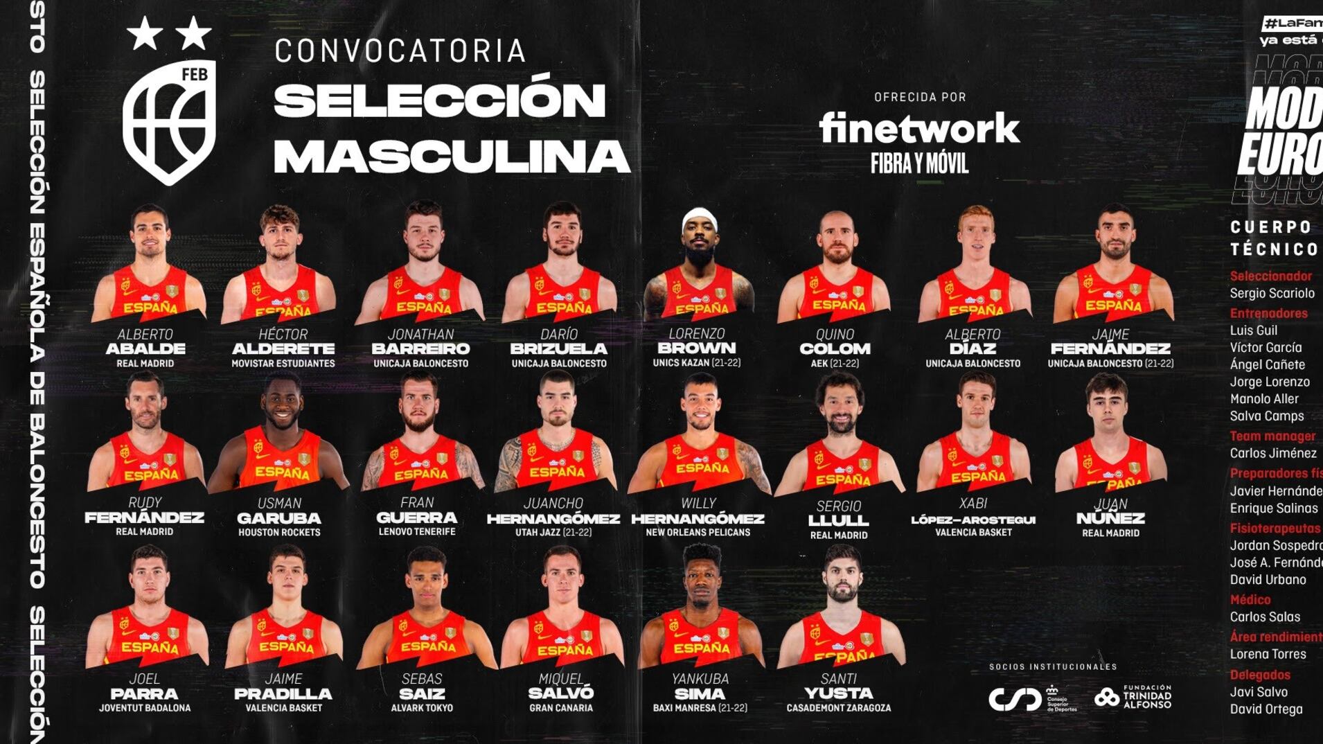 --LISTA DE CONVOCADOS PARA EL EUROBASKET 2022.