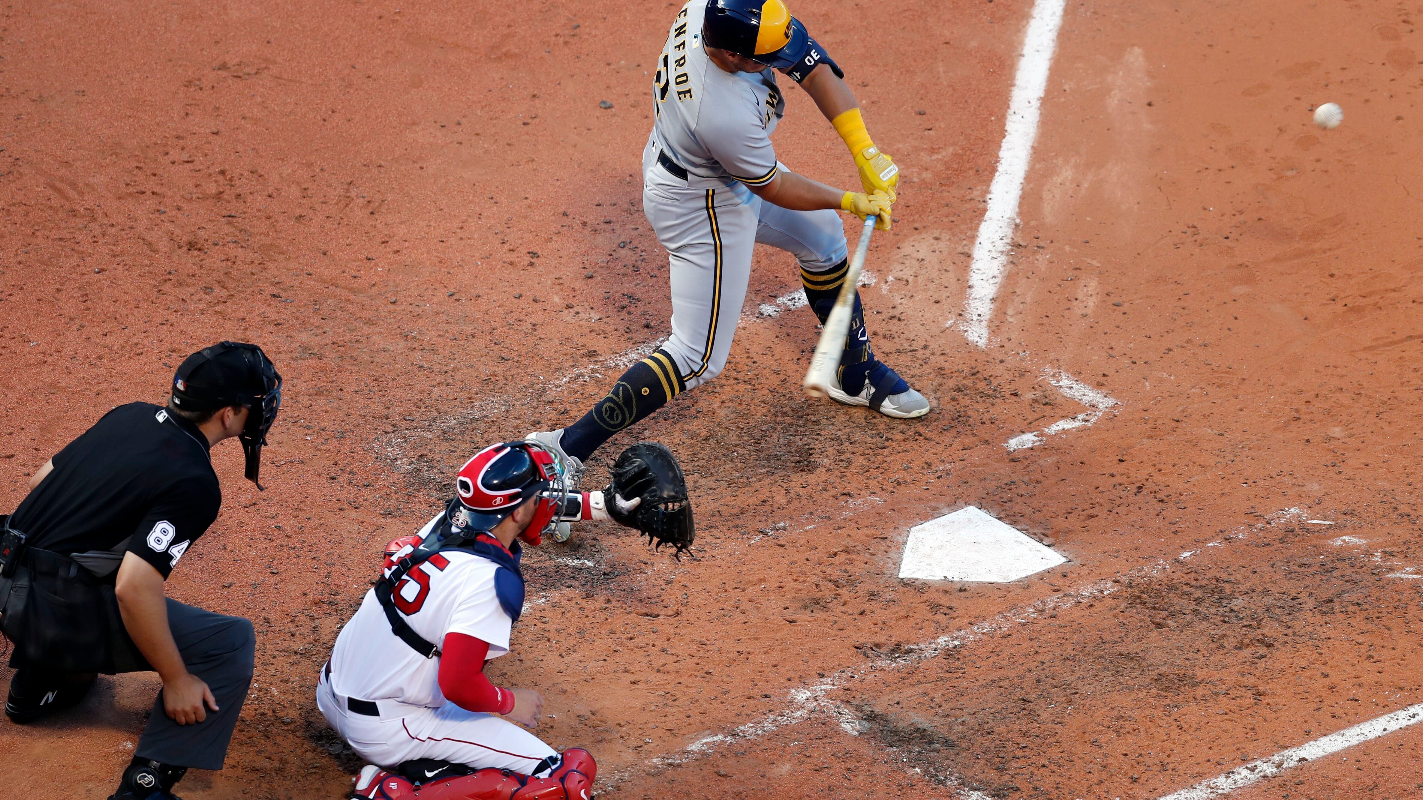 Renfroe, quien jugó una campaña con Boston antes de ser cedido a los Cerveceros en noviembre, encontró una curva de Nick Pivetta (8-8) y colocó la pelota e la segunda fila para su 18vo jonrón, que puso la pizarra 4-1 en el quinto acto. Pivetta apoyó una rodilla en tierra cuando Renfroe hizo contacto con la pelota, y no volteó a verla.