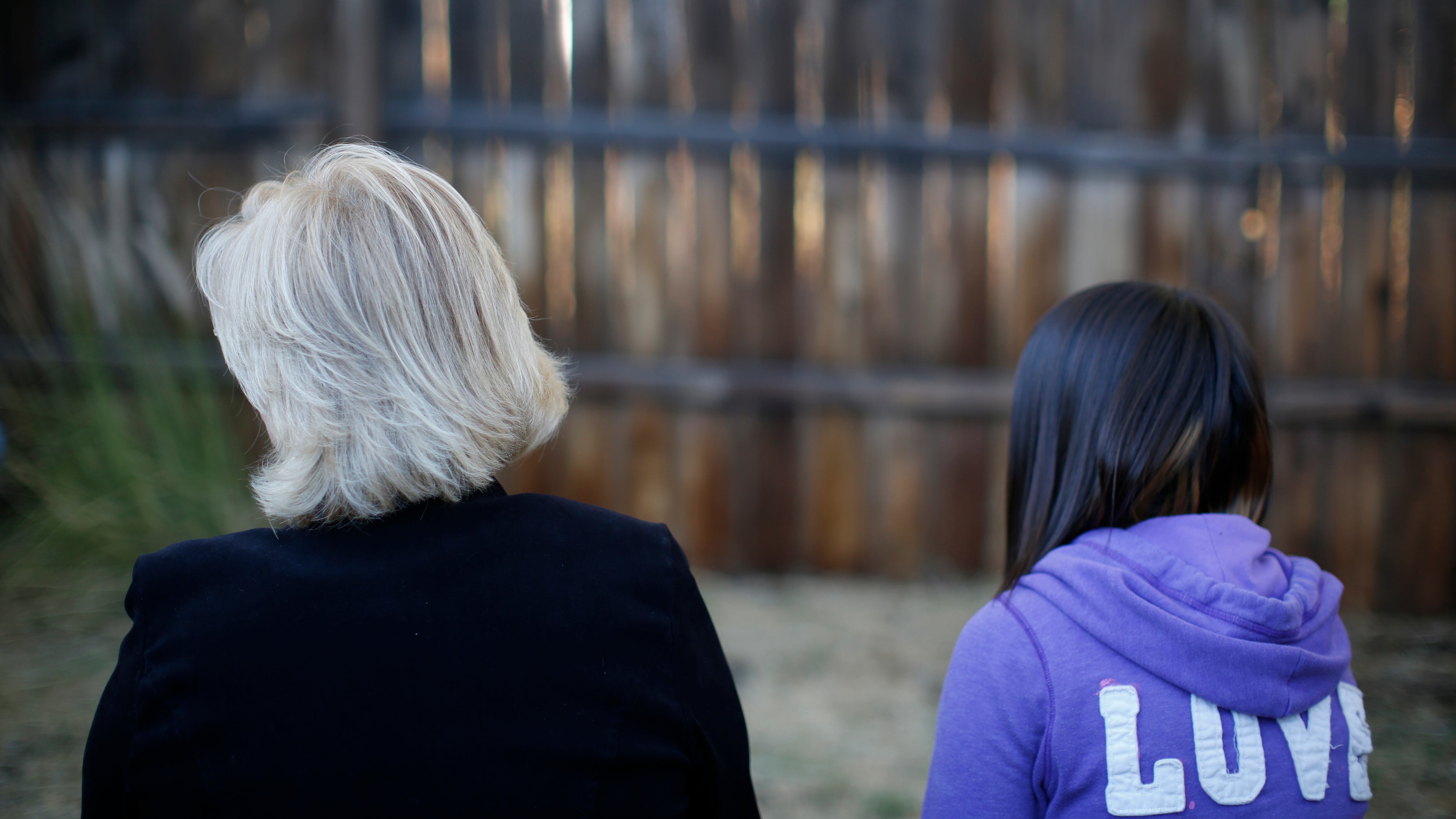 MJ y su madre adoptiva fotografiadas durante una entrevista con la Associated Press en Sierra Vista (Arizona), el 27 de octubre del 2021. "La iglesia mormona apesta", dijo MJ al comentar que esa congregación no hizo nada cuando su padre le confesó a un AP (Dario Lopez-Mills/AP)