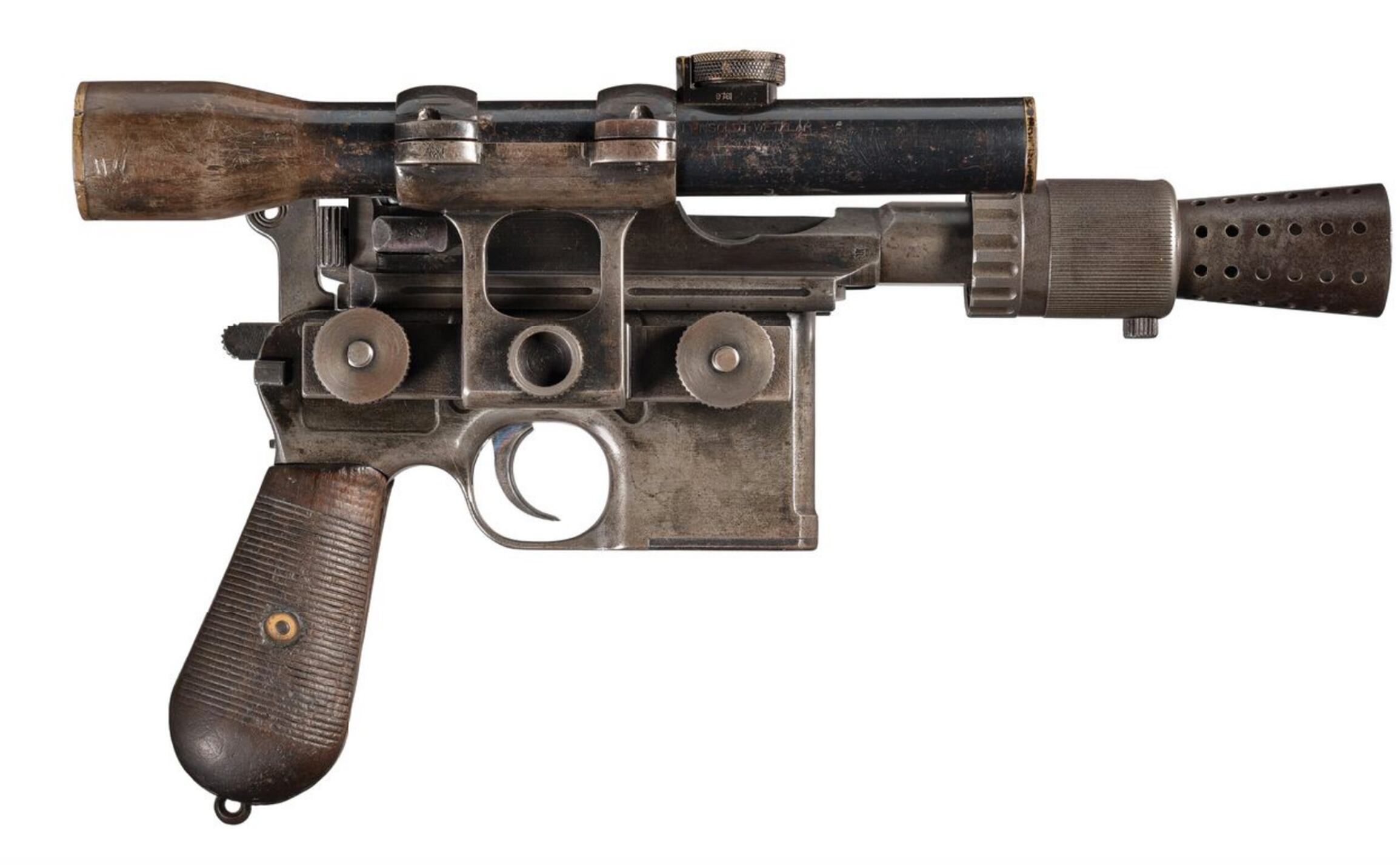 Originalmente, el blaster de Han Solo era una pistola Mauser C96 con mango de escoba. El blaster de Han Solo es una de las armas más reconocidas de la historia del cine.
