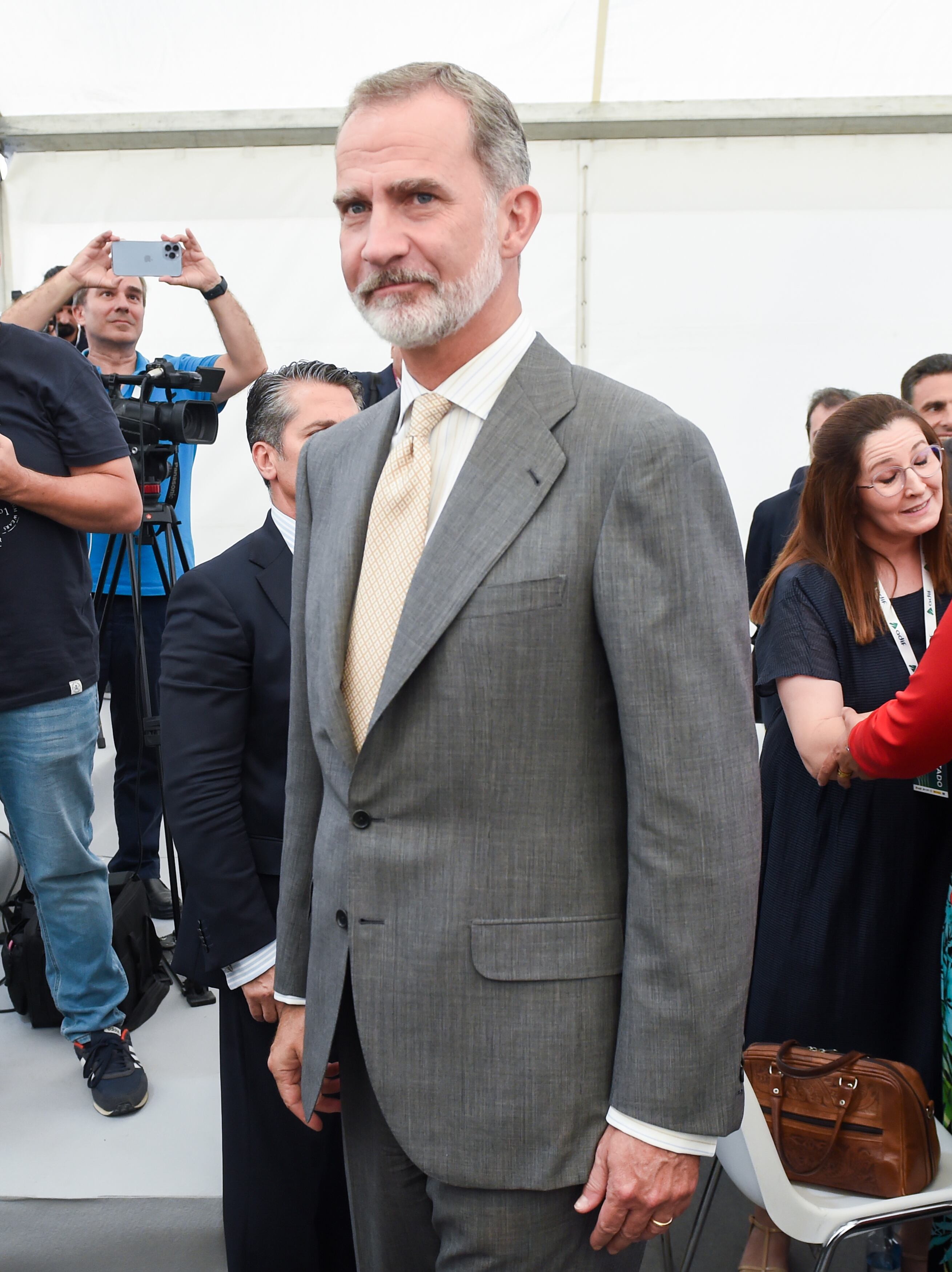 El Rey Felipe VI a su llegada al viaje inaugural de la primera fase de la Plataforma de Alta Velocidad Plasencia-Badajoz, entre las estaciones de Cáceres y Badajoz, a 18 de julio de 2022, en Badajoz, Extremadura (España). El viaje inaugural parte a las Gustavo Valiente - Europa Press (Gustavo Valiente - Europa Press/Europa Press)