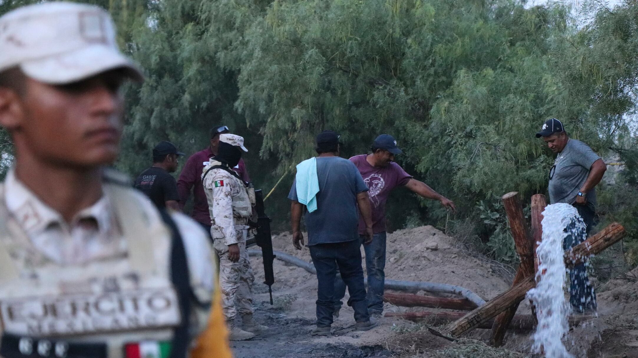 Protección Civil informó que durante la mañana del viernes militares retiraron cuatro bombas de extracción de agua que había en el pozo número 2 para abrir el espacio y lograr el ingreso de las brigadas de búsqueda y rescate.