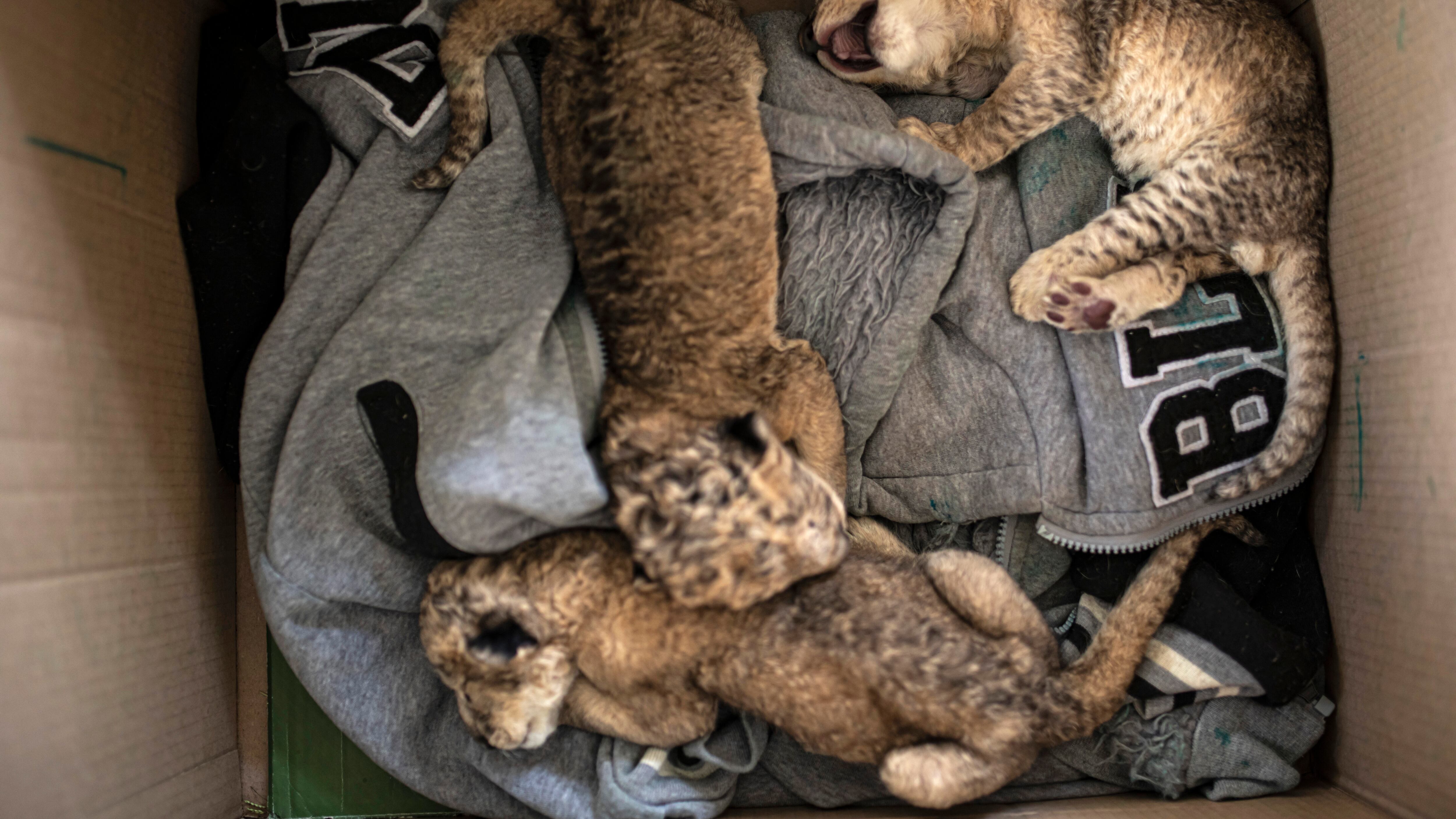 CIUDAD DE GAZA, Franja de Gaza (AP) — Tres cachorros de león fueron exhibidos el sábado en una caja de cartón en el zoológico de la Ciudad de Gaza, un raro regalo visual para niños y adultos, días después que la fuerza aérea israelí atacara el territorio y extremistas de Gaza dispararan cientos de misiles hacia Israel.
