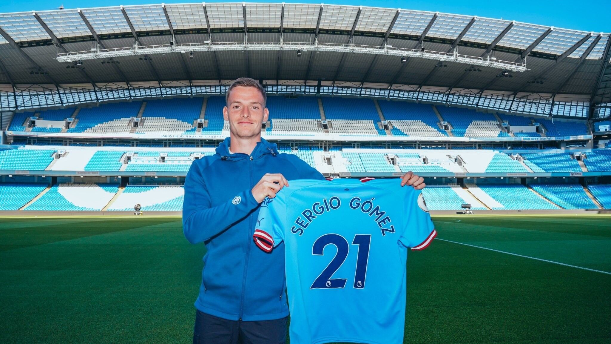 "Sergio Gómez es nuevo jugador del Manchester City. El defensa español, de 21 años, firma por cuatro temporadas procedente del Anderlecht, con el que disputó 49 partidos la temporada pasada como lateral izquierdo".