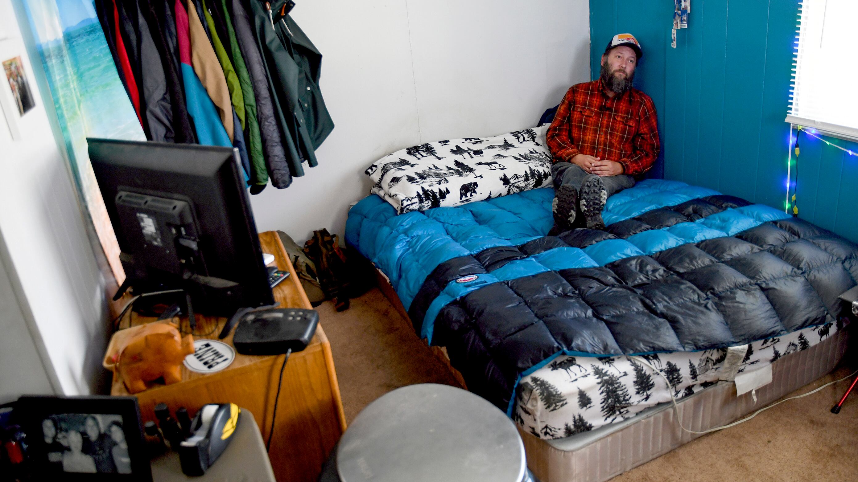 Sean Bailey fotografiado en la pequeña habitación que alquila en una casa rodante de Steamboat Springs (Colorado) el 4 de agosto del 2022. (AP Photo/Thomas Peipert) AP (Thomas Peipert/AP)
