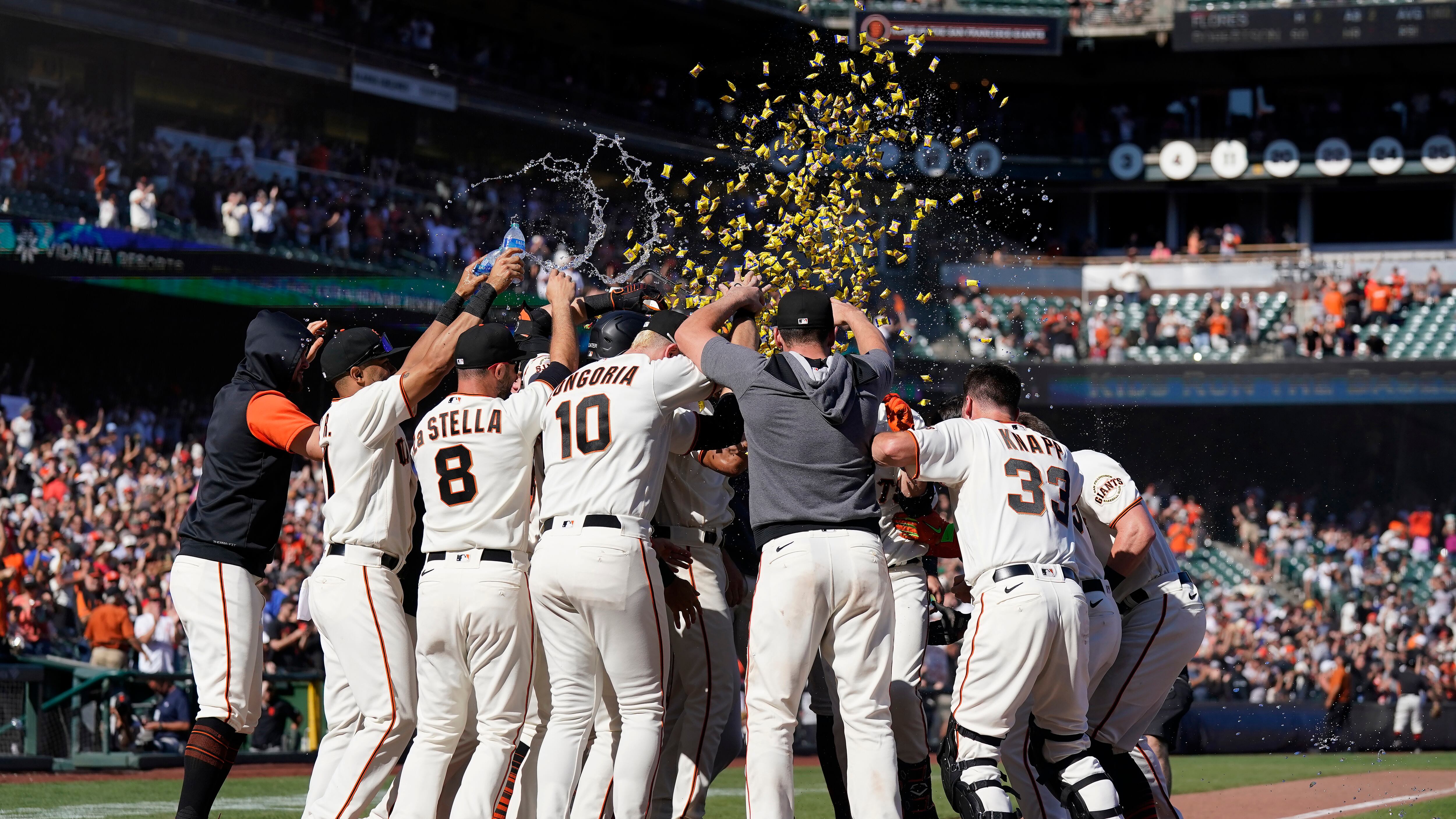 Por los Gigantes, los venezolanos Wilmer Flores de 5-2 con una anotada y dos impulsadas, Thairo Estrada de 3-1 con una anotada. El mexicano Luis González de 4-1.