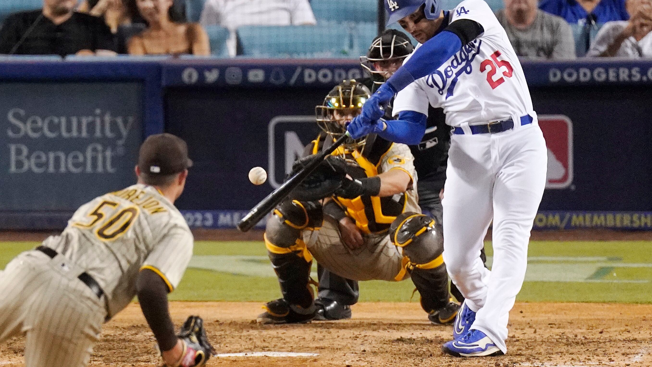 Los Dodgers rompieron el empate con un cuarto inning de cinco carreras, antes de que los Padres recortaran distancias y se pusieran a una en el séptimo.