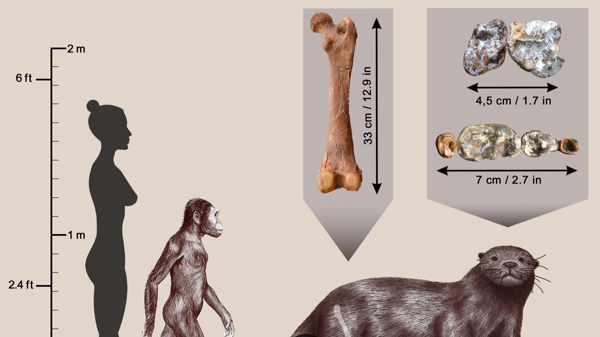 Con un peso estimado de 200 kilogramos es la nutria más grande jamás descrita; se habría codeado, y posiblemente competido por comida, con nuestros ancestros mucho más pequeños cuando vivió junto a ellos hace 3,5 millones a 2,5 millones de años. Un artículo que describe al animal acaba de aparecer en la revista científica francesa Comptes Rendus Palevol.