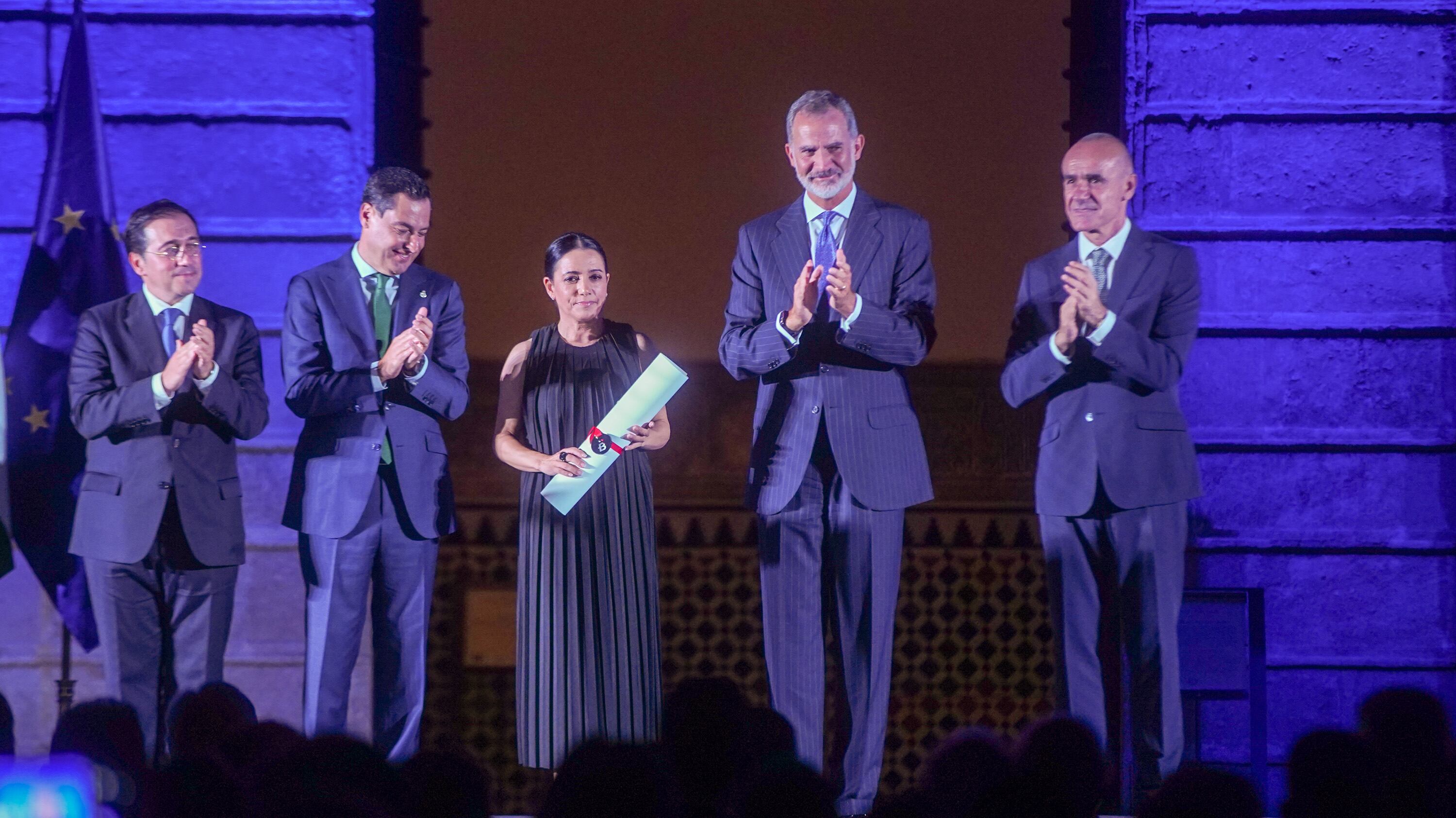 En el acto, el Rey ha hecho entrega también del primer Giraldillo Internacional Ciudad de Sevilla a la coreógrafa y bailaora Eva Yerbabuena, en lo que ha sido el pistoletazo de salida de la Bienal de Flamenco. Felipe VI ha destacado que este premio es un reconocimiento a una "carrera sobresaliente" y también a la "contribución que con ella hace al flamenco, Patrimonio Cultural Inmaterial de la Humanidad". "Un acervo que aumenta, que se amplía y que se sigue reconociendo y admirando en todo el mundo. El Premio Princesa de Asturias de las Artes de este año también lo reconoce a través de las aportaciones de Carmen Linares y María Pagés", ha recordado.