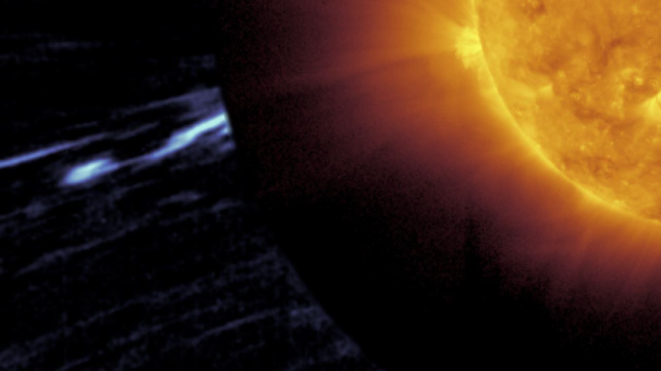 El 25 de marzo de 2022, Solar Orbiter estaba a solo un día de un paso cercano del Sol, colocándolo dentro de la órbita del planeta Mercurio, y su instrumento Metis estaba tomando datos. Metis bloquea el resplandor brillante de la luz de la superficie del Sol y toma fotografías de la atmósfera exterior del Sol, conocida como corona. Las partículas en la corona están cargadas eléctricamente y siguen las líneas del campo magnético del Sol hacia el espacio. Las partículas cargadas eléctricamente se llaman plasma.