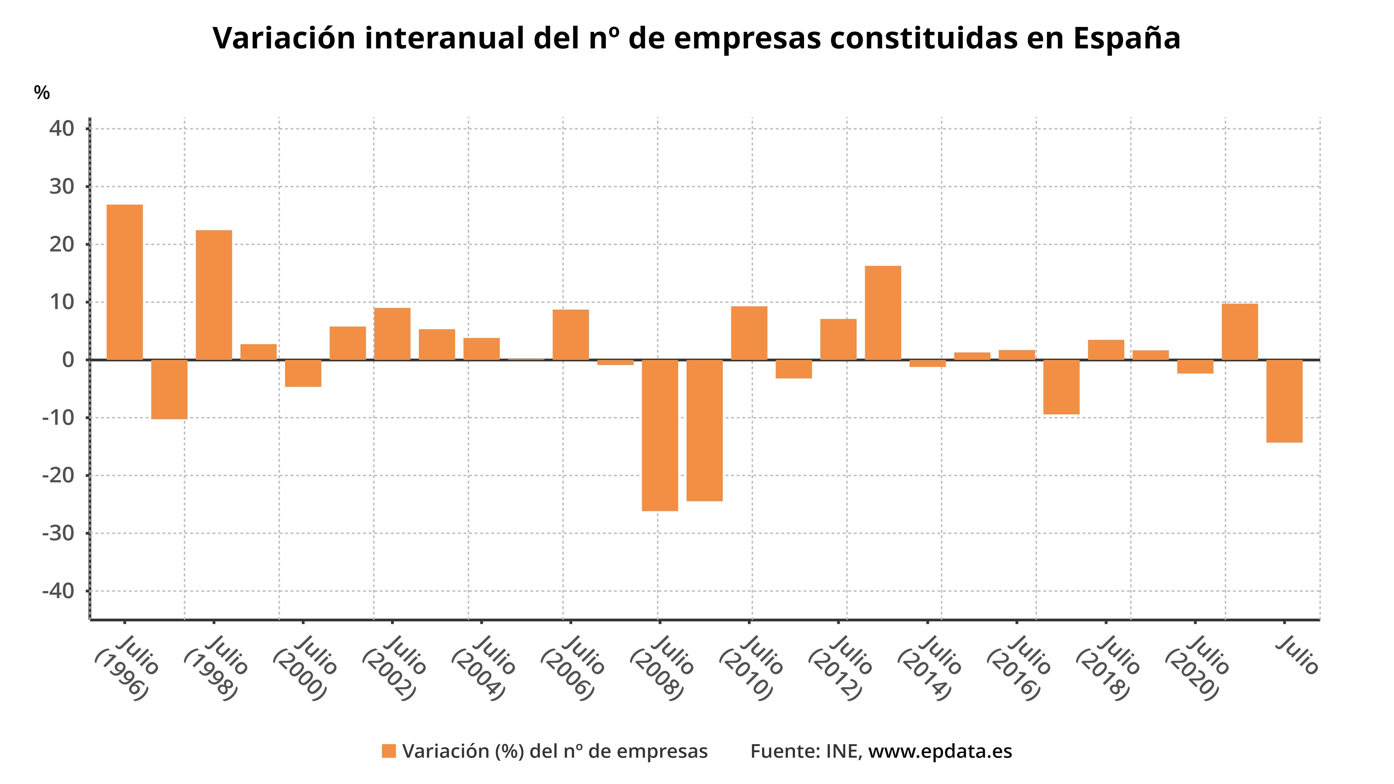 Con la caída de julio, la creación de empresas encadena cuatro meses consecutivos de retrocesos interanuales después de que en abril disminuyera un 8,2%, un 4,6% en mayo y un 6,8% en junio.