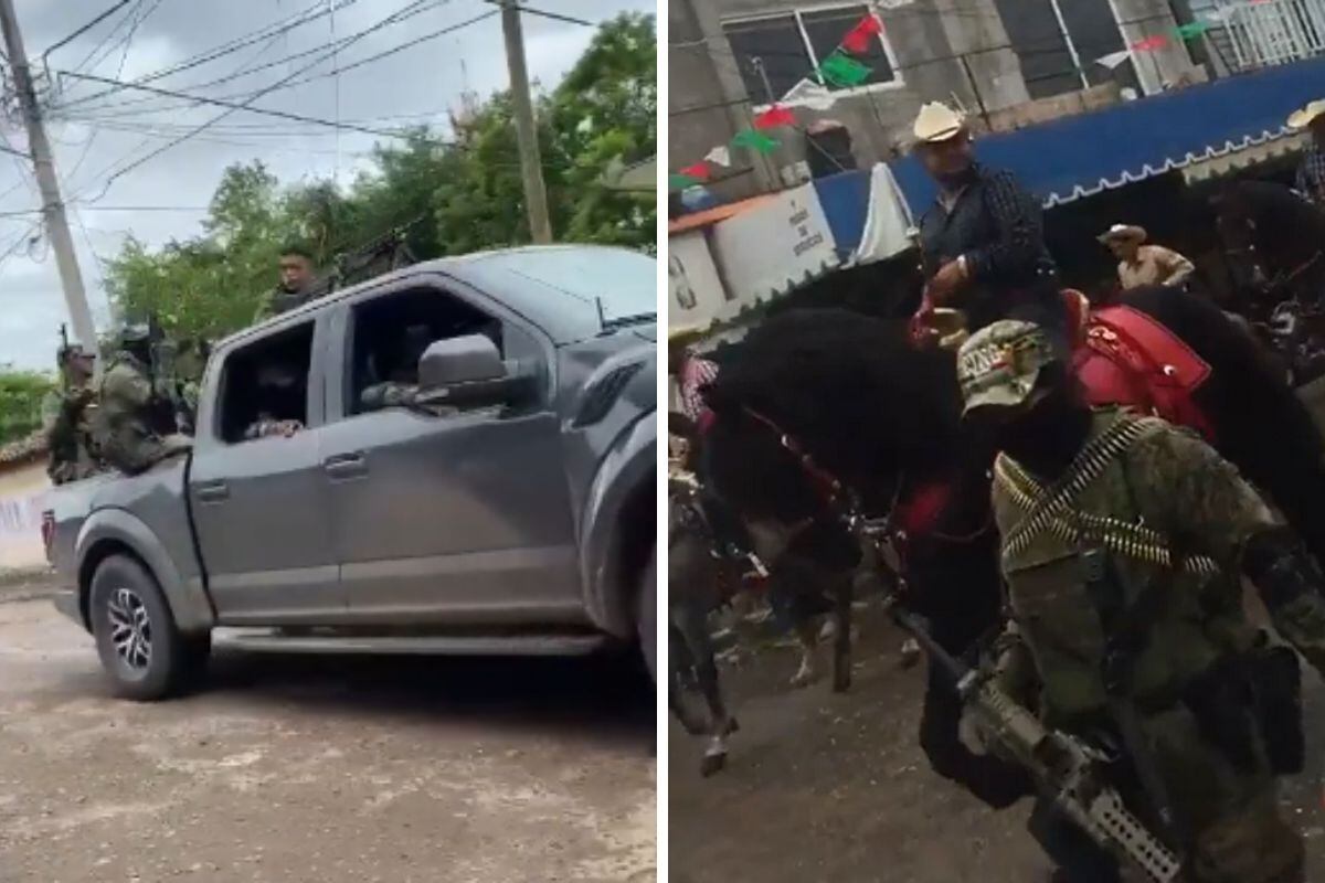 En redes sociales, se difundieron videos y fotografías donde se ve a hombres portando fusiles que caminan entre las personas que participan en el desfile, así como a bordo de camionetas.